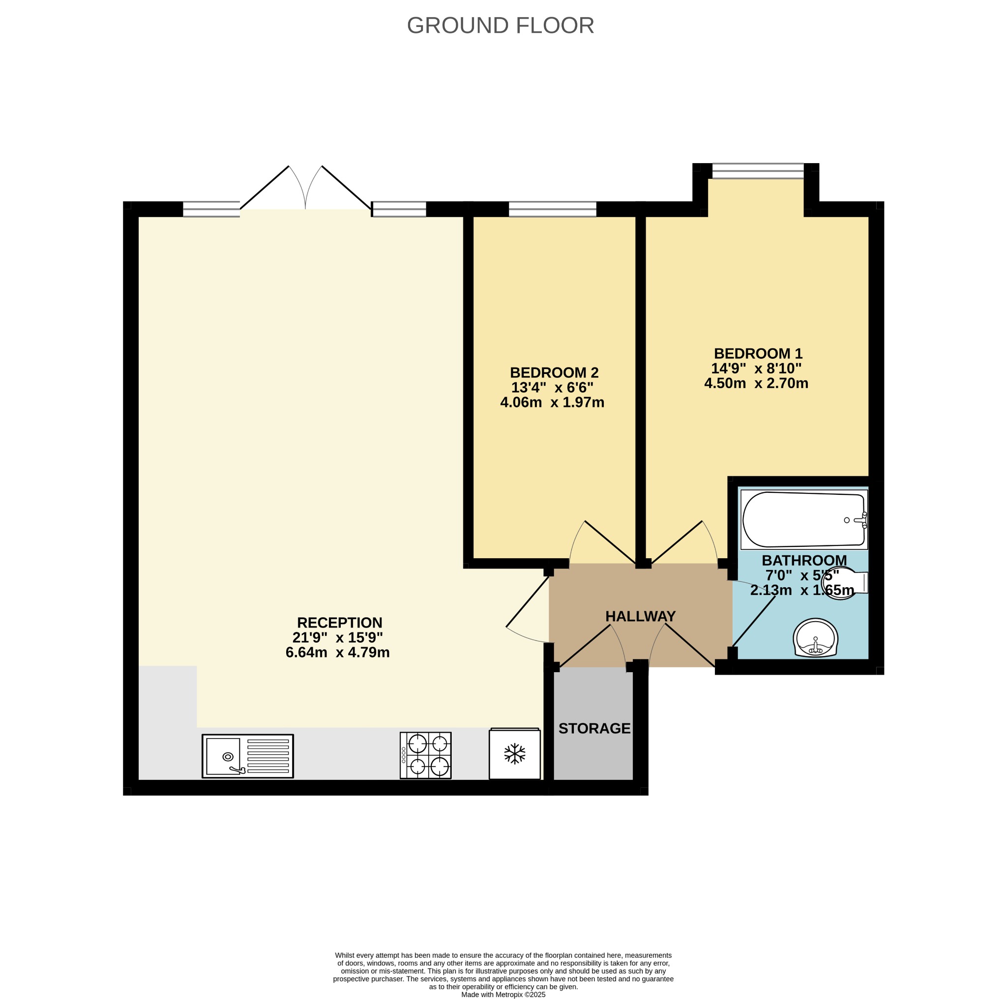 Both bedrooms have fitted carpets, the rest of the property has hardwood floors.