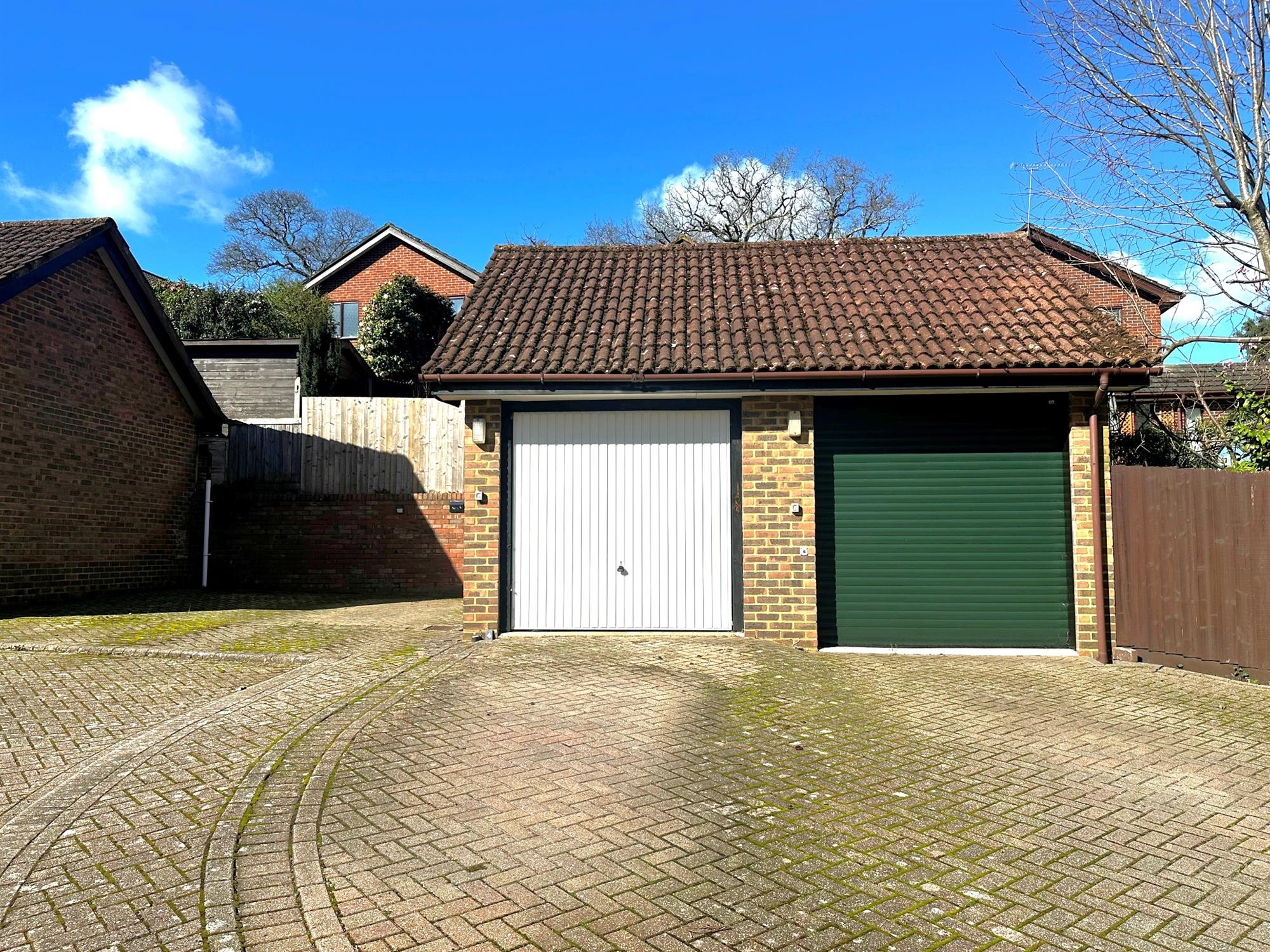Garage with up and over door to front. Parking to the front.