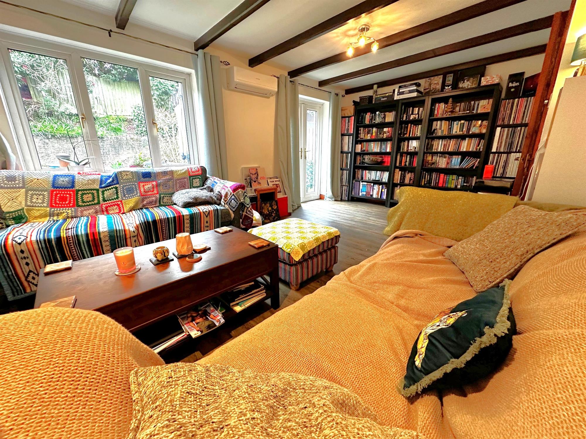 Window to rear. Double glazed french doors to garden. Mitsubishi air conditioning unit. Wood effect flooring. Two radiators.