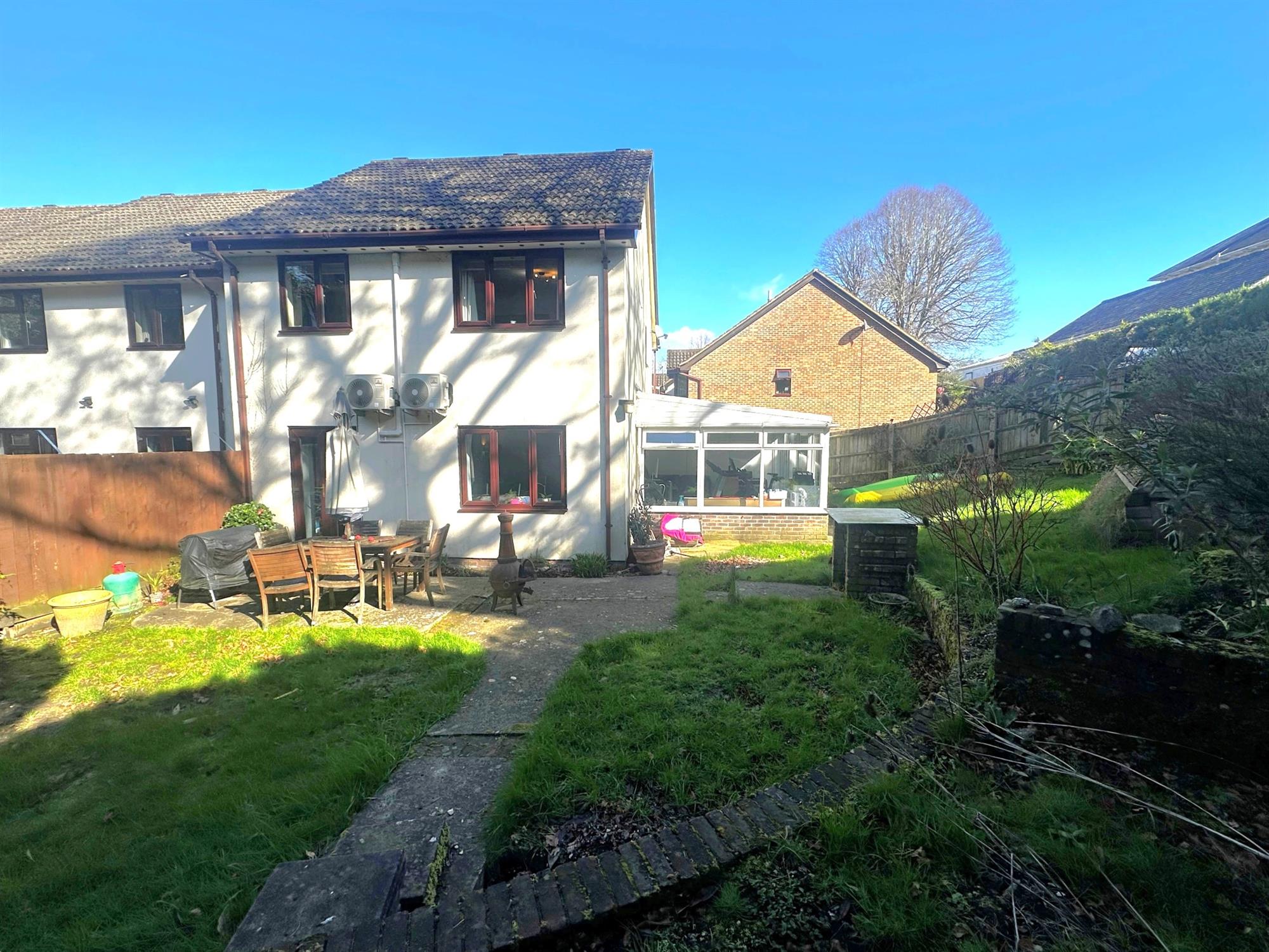 Of brick and UPVC construction. Sliding patio doors to garden. Tile effect laminate flooring.