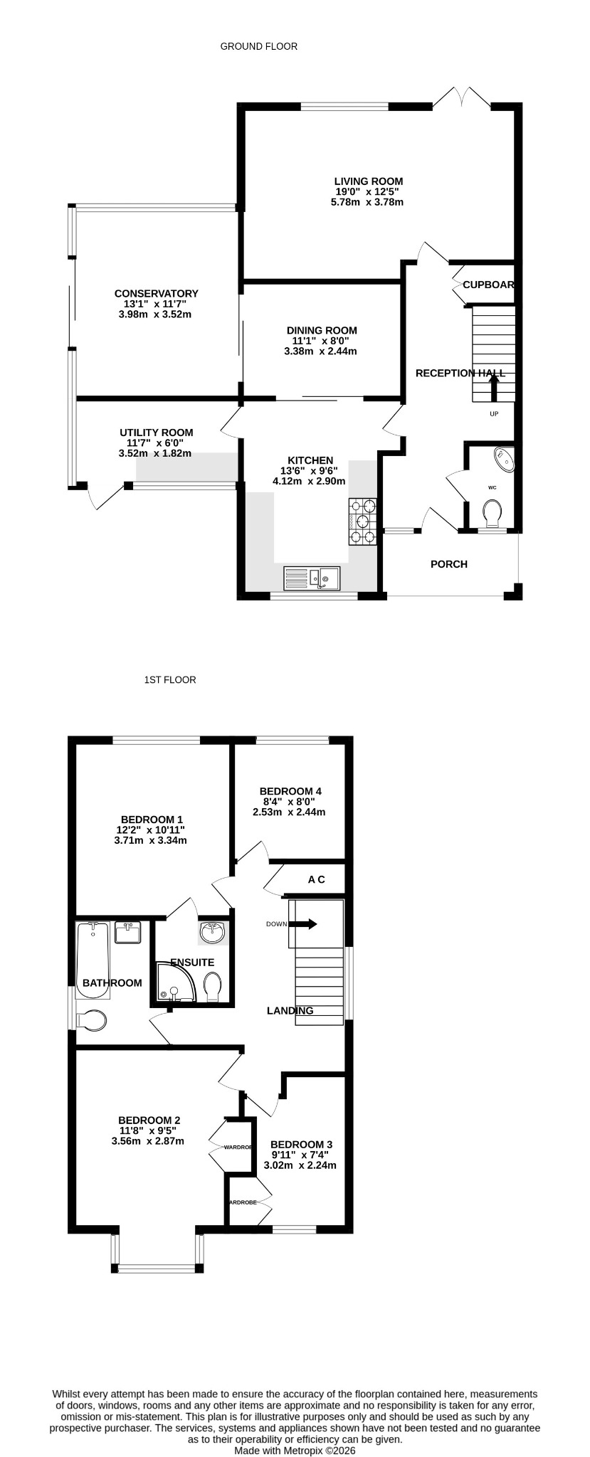 11' 8" (3.56m) x 9' 5" (2.87m)