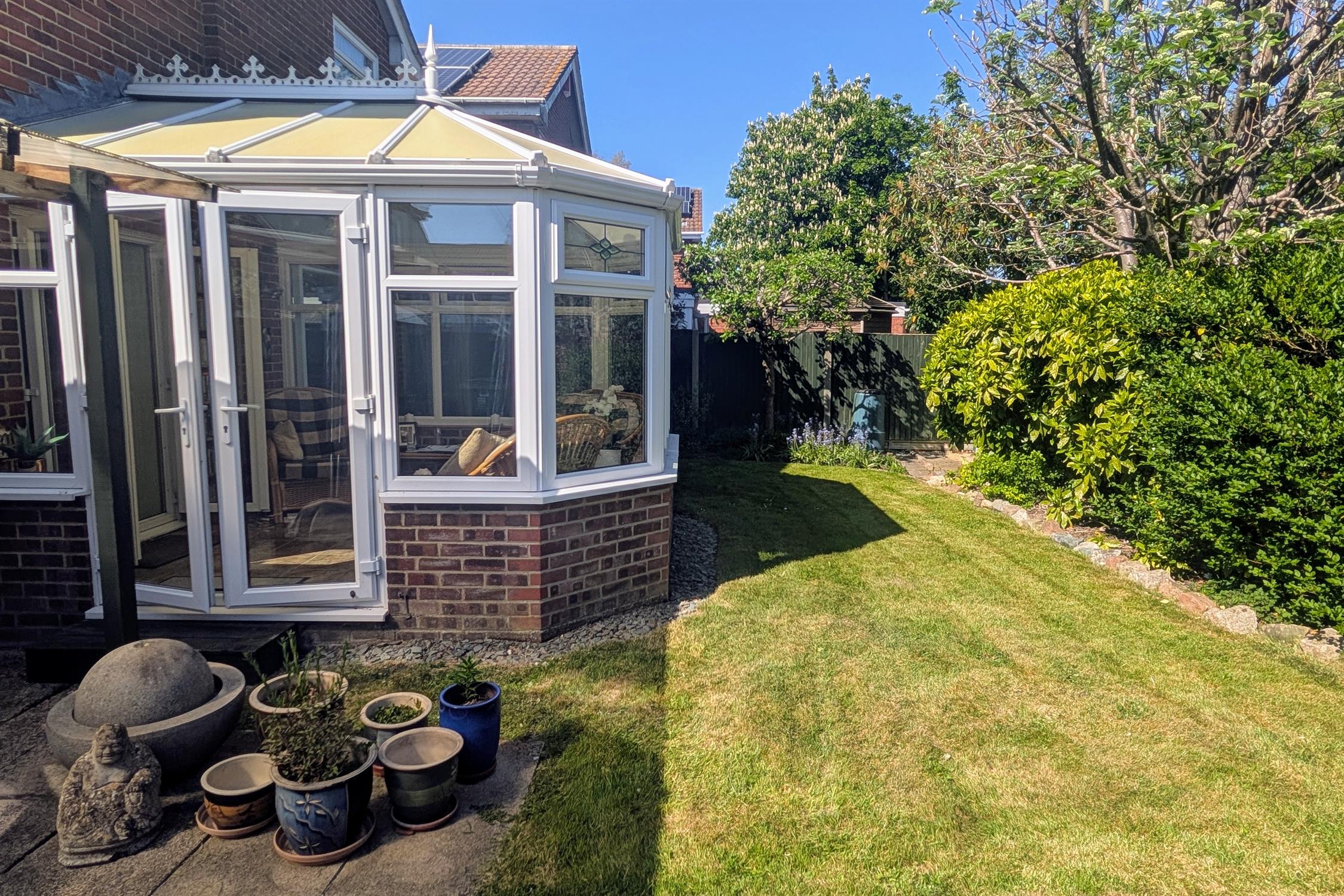The rear garden has a patio area adjacent to the property. The remainder of the garden can be found mainly laid to lawn with flower and shrub borders. There is a personal door to garage. The garden is fence, wall and brick enclosed and has gated side pedestrian access. Shed.
