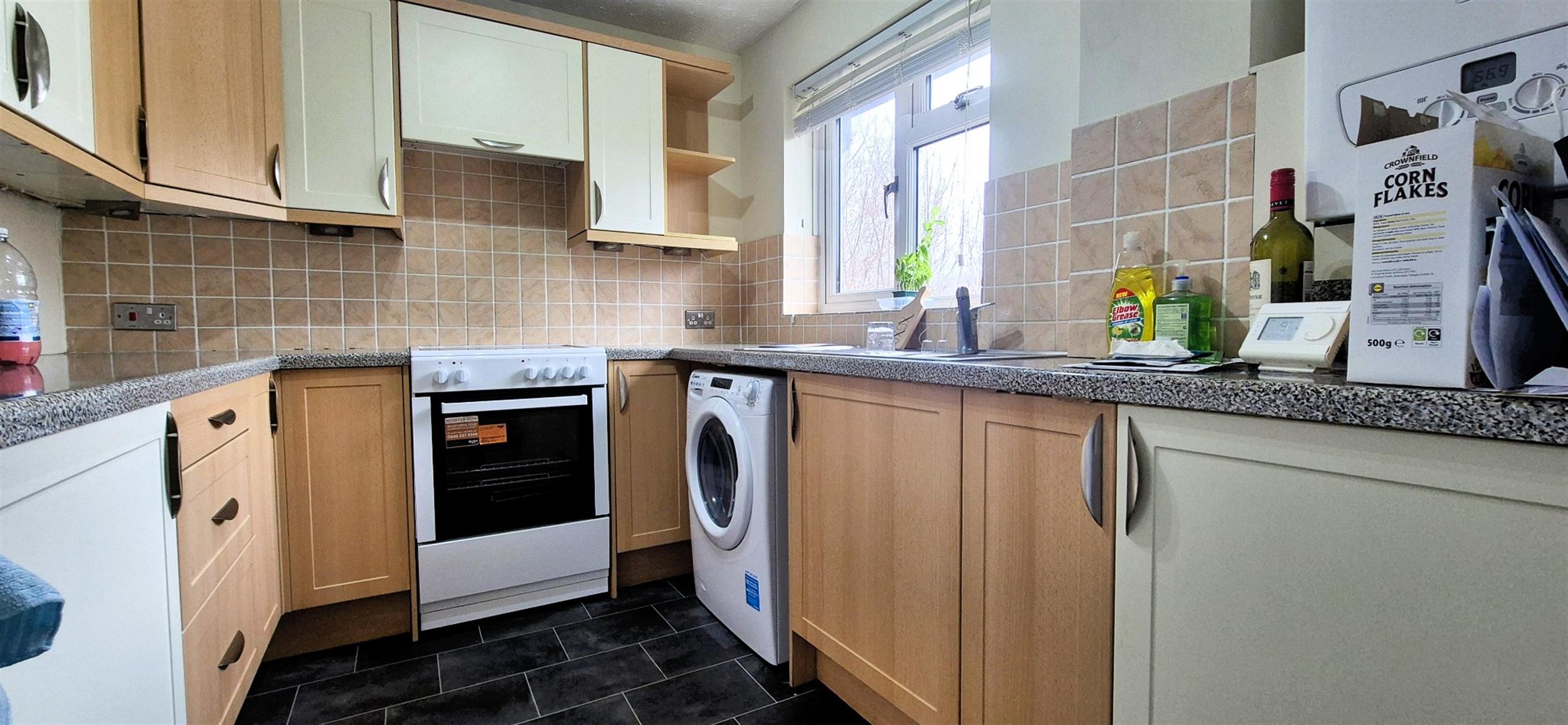 Appliances include: Electric cooker, fridge/freezer and washing machine.