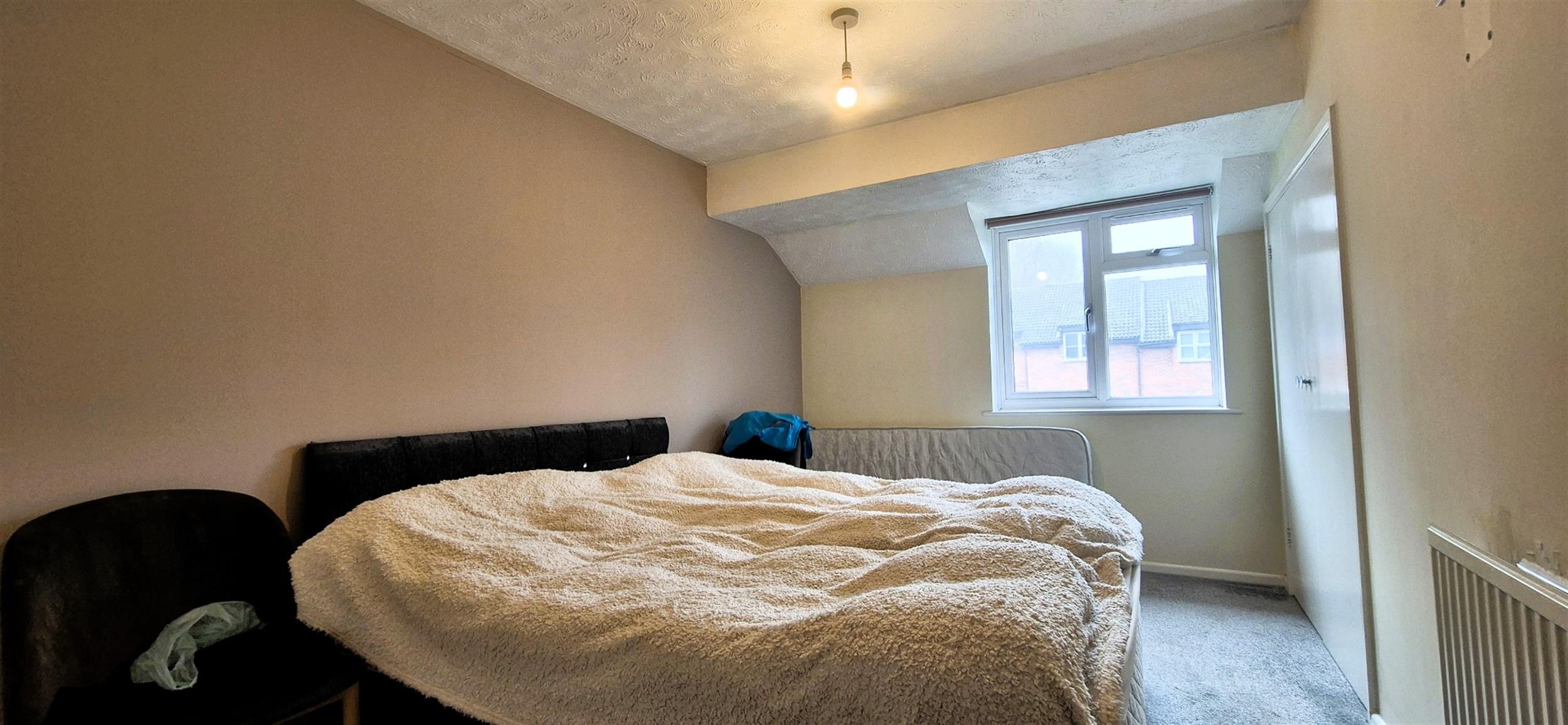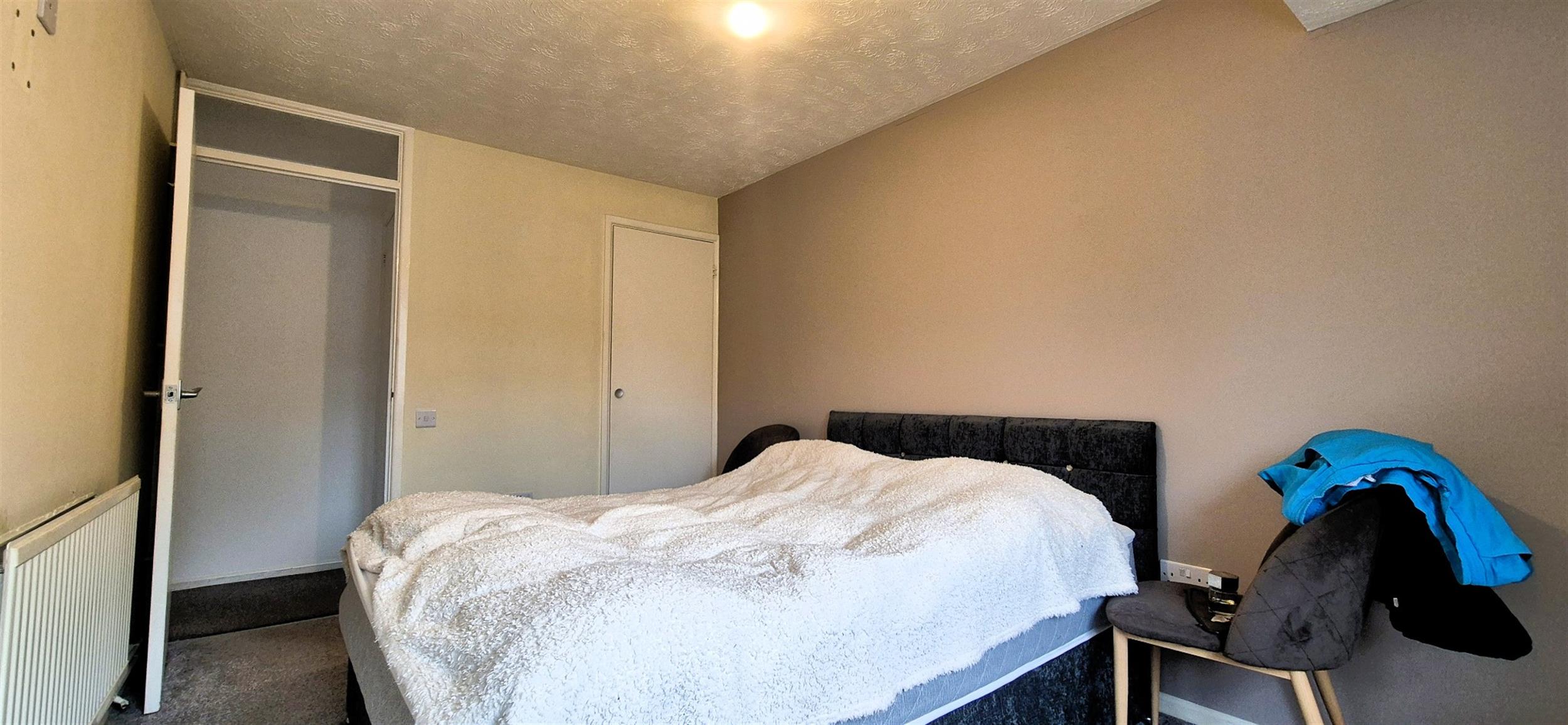 Double bedroom with storage space and a window to front.