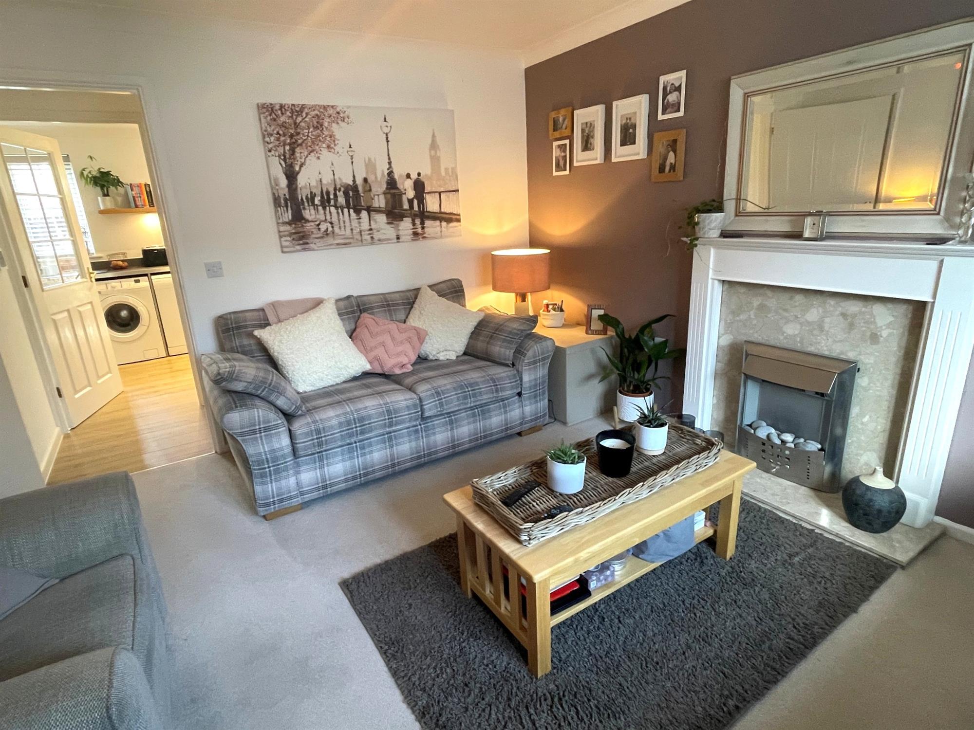 Window to front. Feature fireplace with electric fire fitted and mantle over. Under-stair store cupboard.