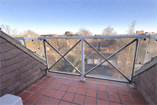 Carpeted flooring. Radiator. Textured ceiling and smooth walls, patio doors opening onto south facing balcony.