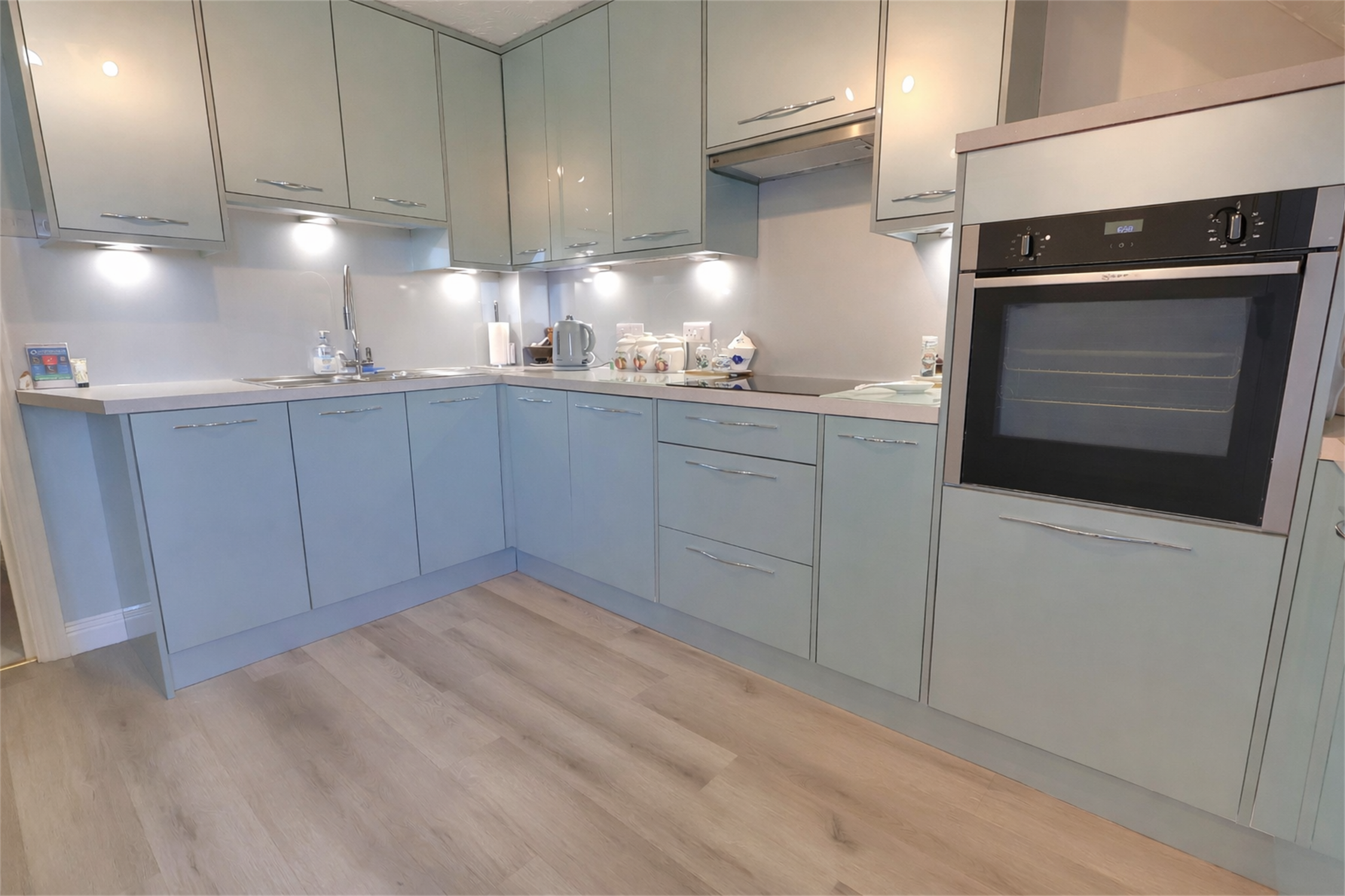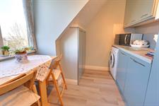 Double glazed windows to rear aspect. Textured ceiling and smooth walls. Laminate flooring. Range of wall and base units with worktops over. Sink with mixer tap and drainer. Integrated dishwasher, space for washing machine and fridge/freezer. Electric hob and oven with extractor over. Part tiled walls. Boiler.