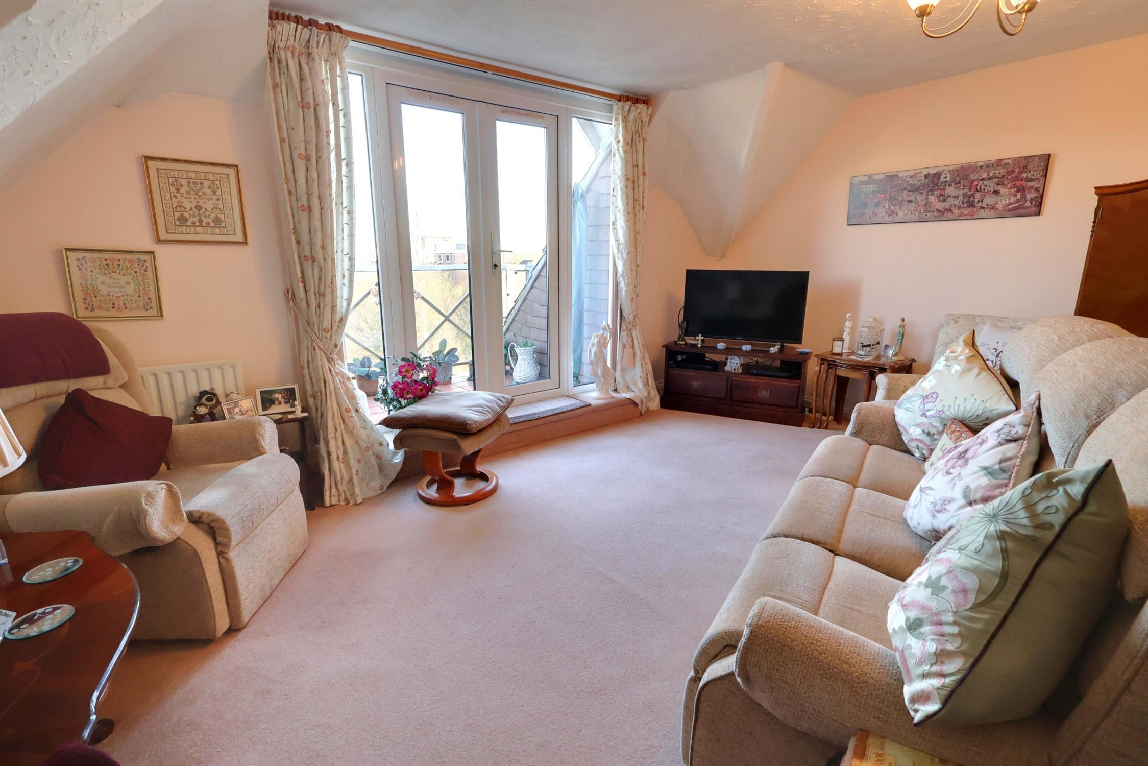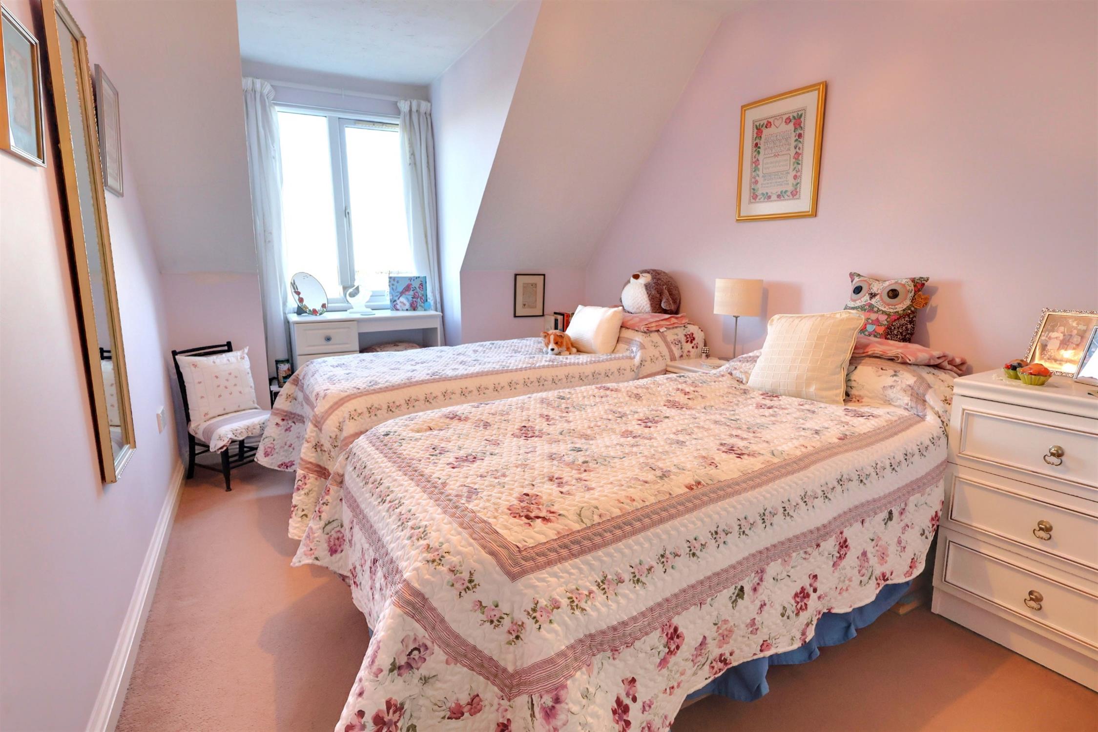 Two double bedrooms with the main bedroom benefiting from many built in wardrobes, cupboards and dressing table. En-suite bathroom with shower over the bath. Loft access above the apartment. The property also benefits from a garage in a block, with a parking space in front of the garage. Double glazed and gas central heating. Communal lift to all floors and secure entry system.