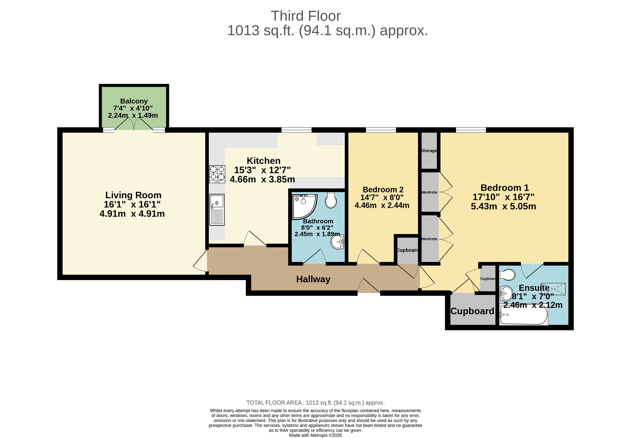 BEDROOM ONE 17' 10" (5.43m) x 16' 7" (5.05m):