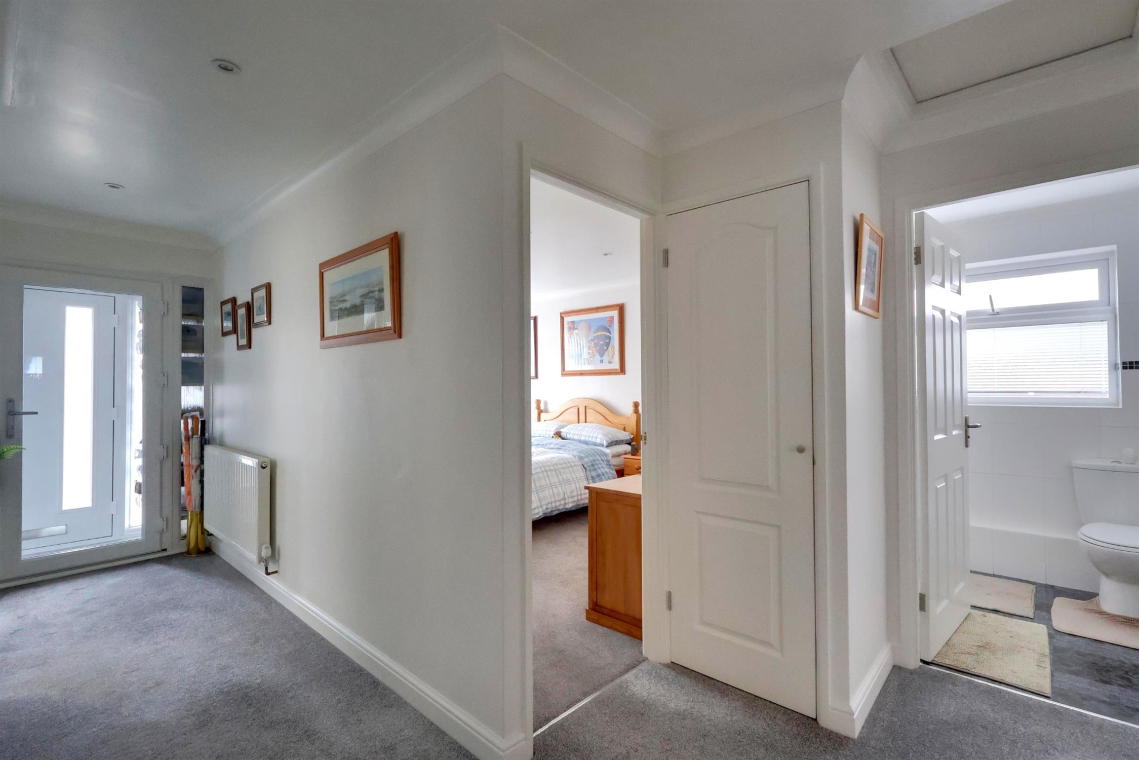 Accessed via modern composite glazed front door, leading to entrance porch with tiled flooring and fitted shelving, with glazed uPVC door leading to inner hall.