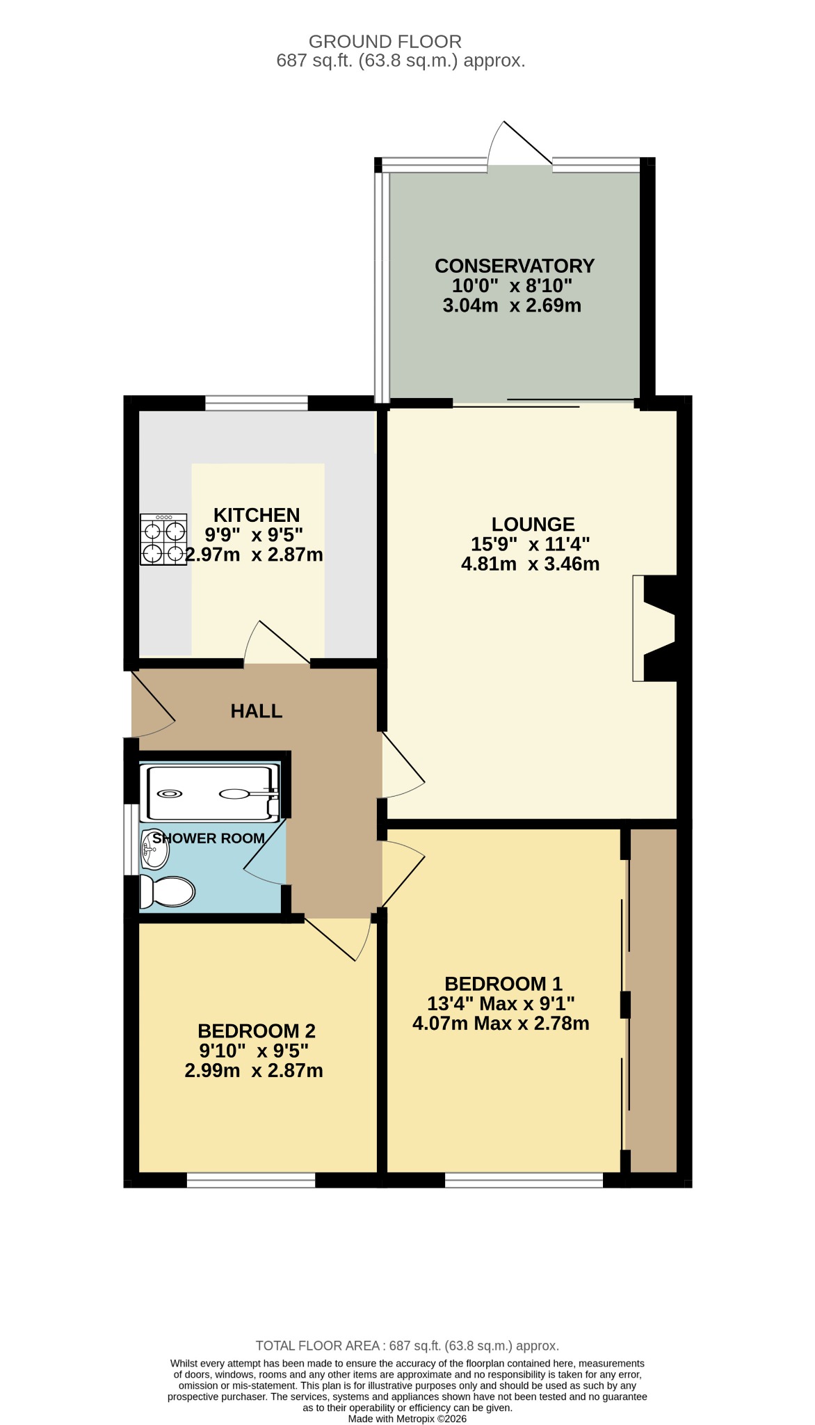 Side and rear aspect double glazed windows, rear aspect double glazed door leading to the rear garden, radiator, polycarbonate style roof.