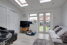 Double glazed window to the rear aspect and double glazed patio doors leading to the rear garden. Vaulted smooth ceiling with two skylights. Radiator.