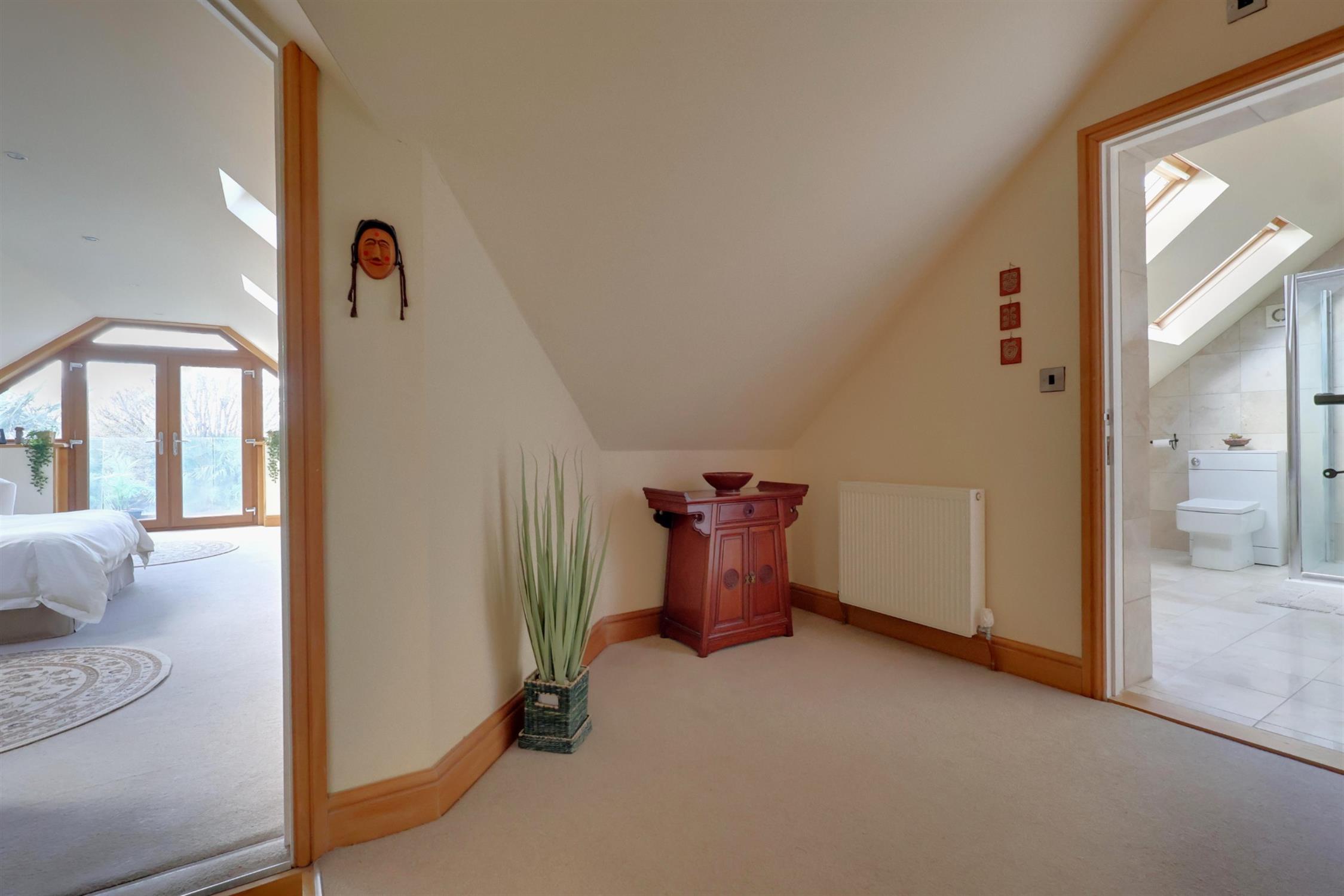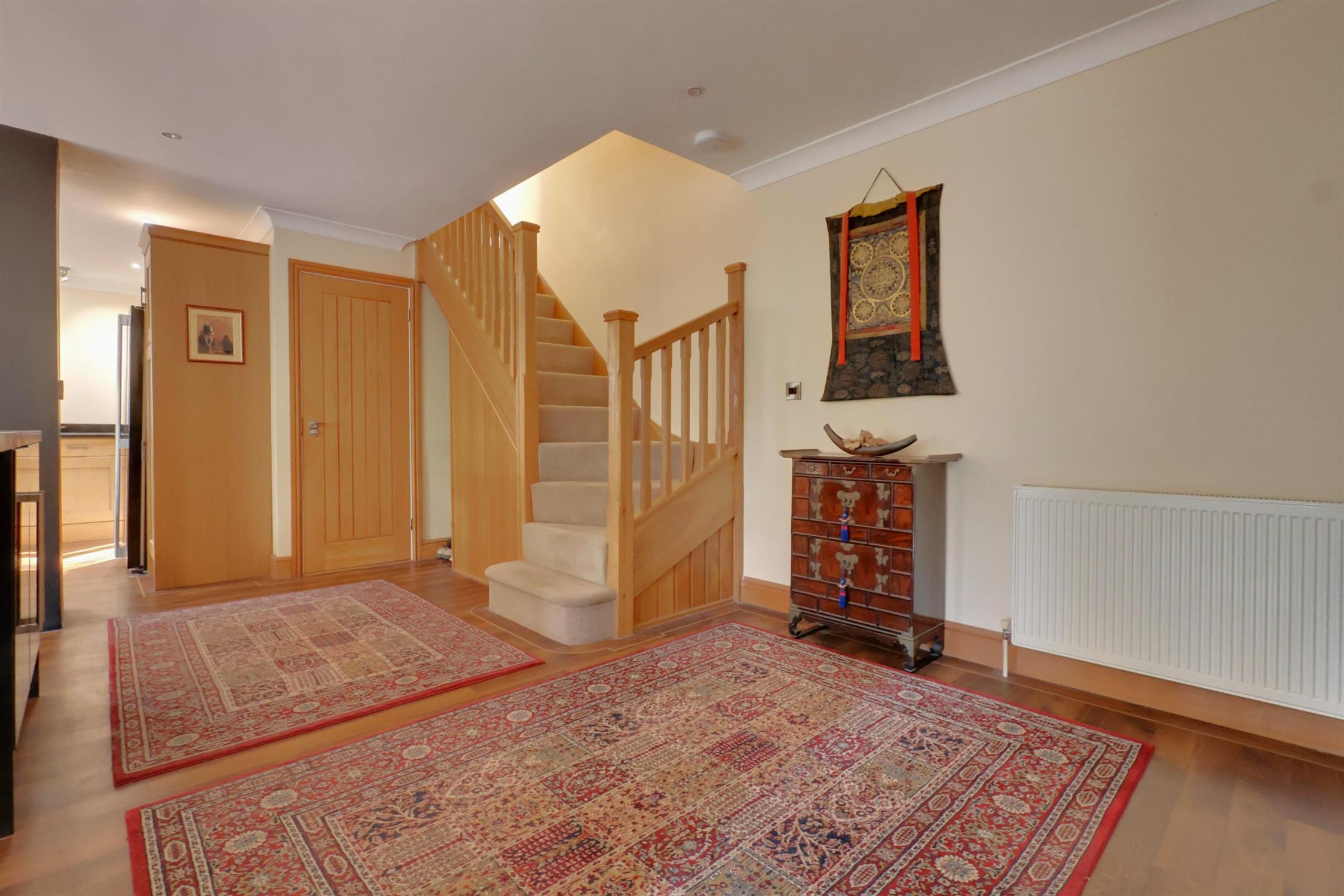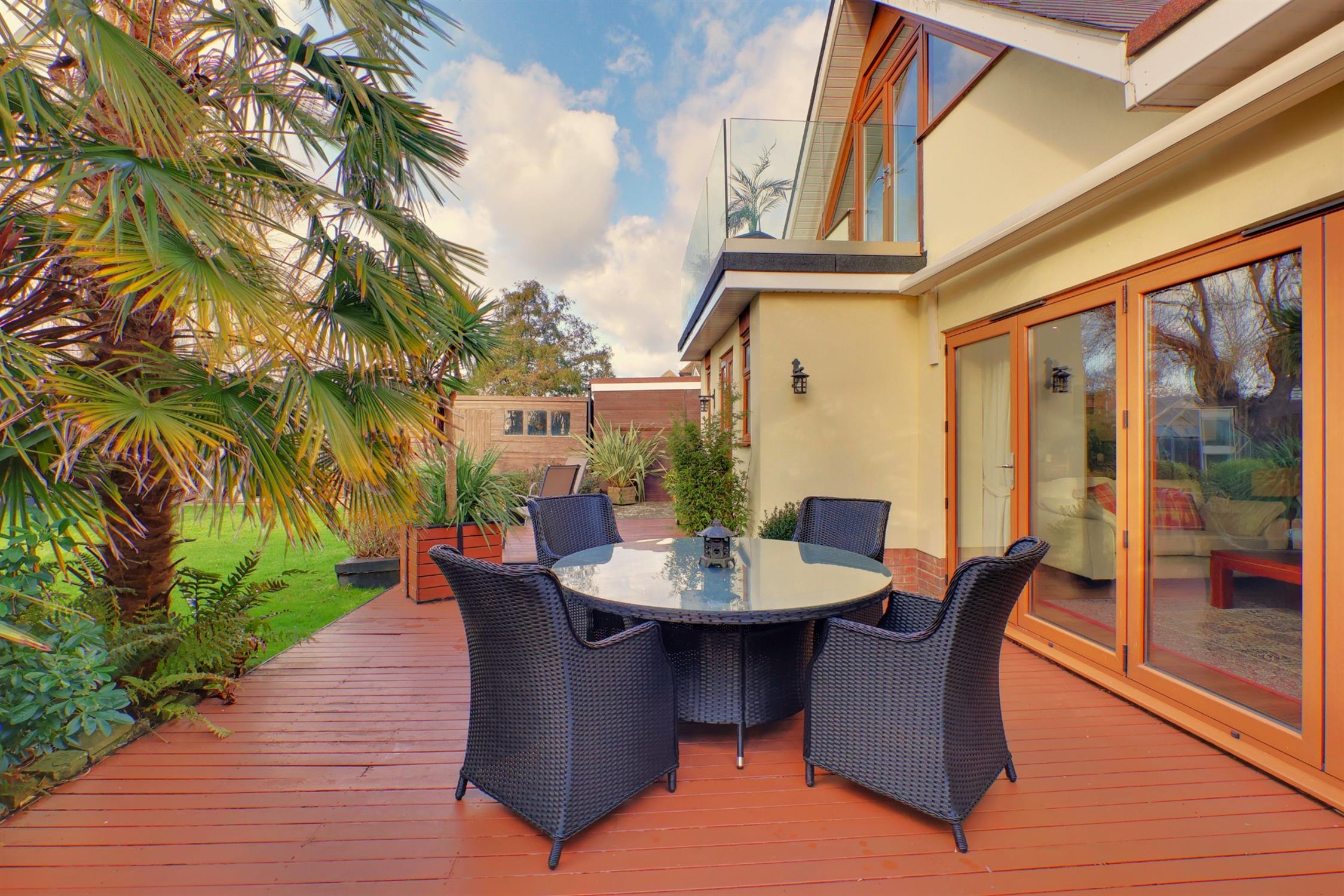 A beautifully presented five bedroom, detached property that enjoys a west facing rear garden. There is a generous and luxurious master bedroom, which has a separate dressing room and a balcony with far reaching views over fields and paddocks. The property provides modern and contemporary accommodation, with a substantial open plan living space with attractive bi-fold doors which open onto a decking area. This area also provides a well-appointed kitchen with ample work surface and access to a utility room and separate WC.
