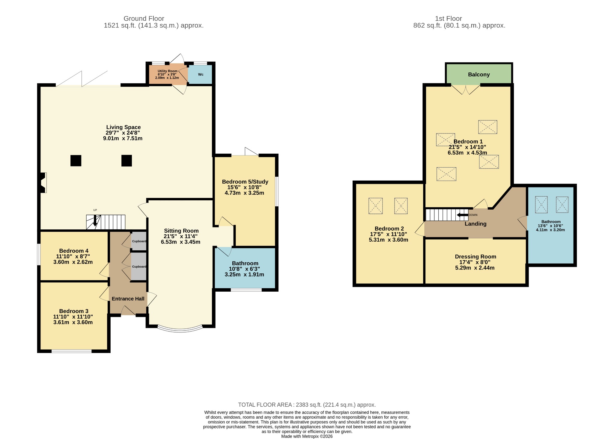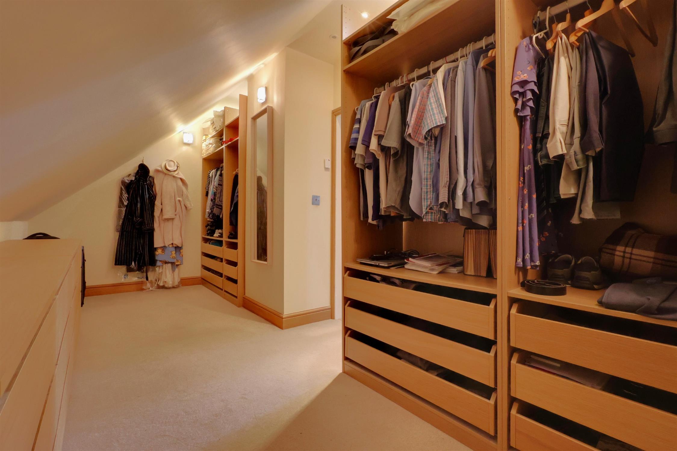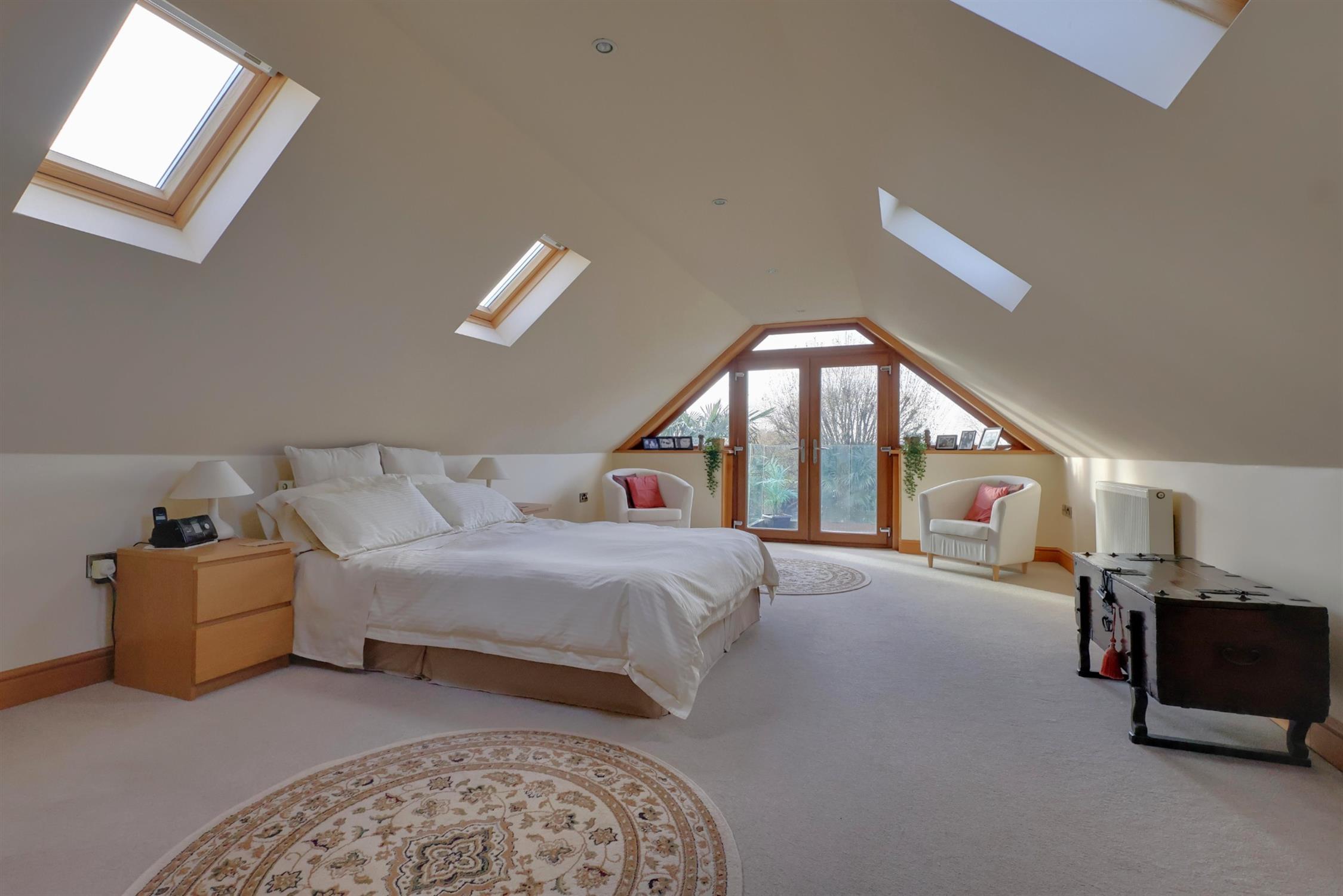 A beautifully presented five bedroom, detached property that enjoys a west facing rear garden. There is a generous and luxurious master bedroom, which has a separate dressing room and a balcony with far reaching views over fields and paddocks. The property provides modern and contemporary accommodation, with a substantial open plan living space with attractive bi-fold doors which open onto a decking area. This area also provides a well-appointed kitchen with ample work surface and access to a utility room and separate WC.