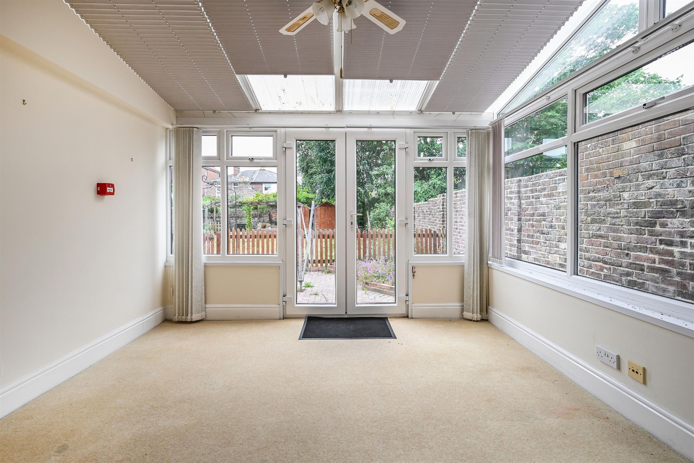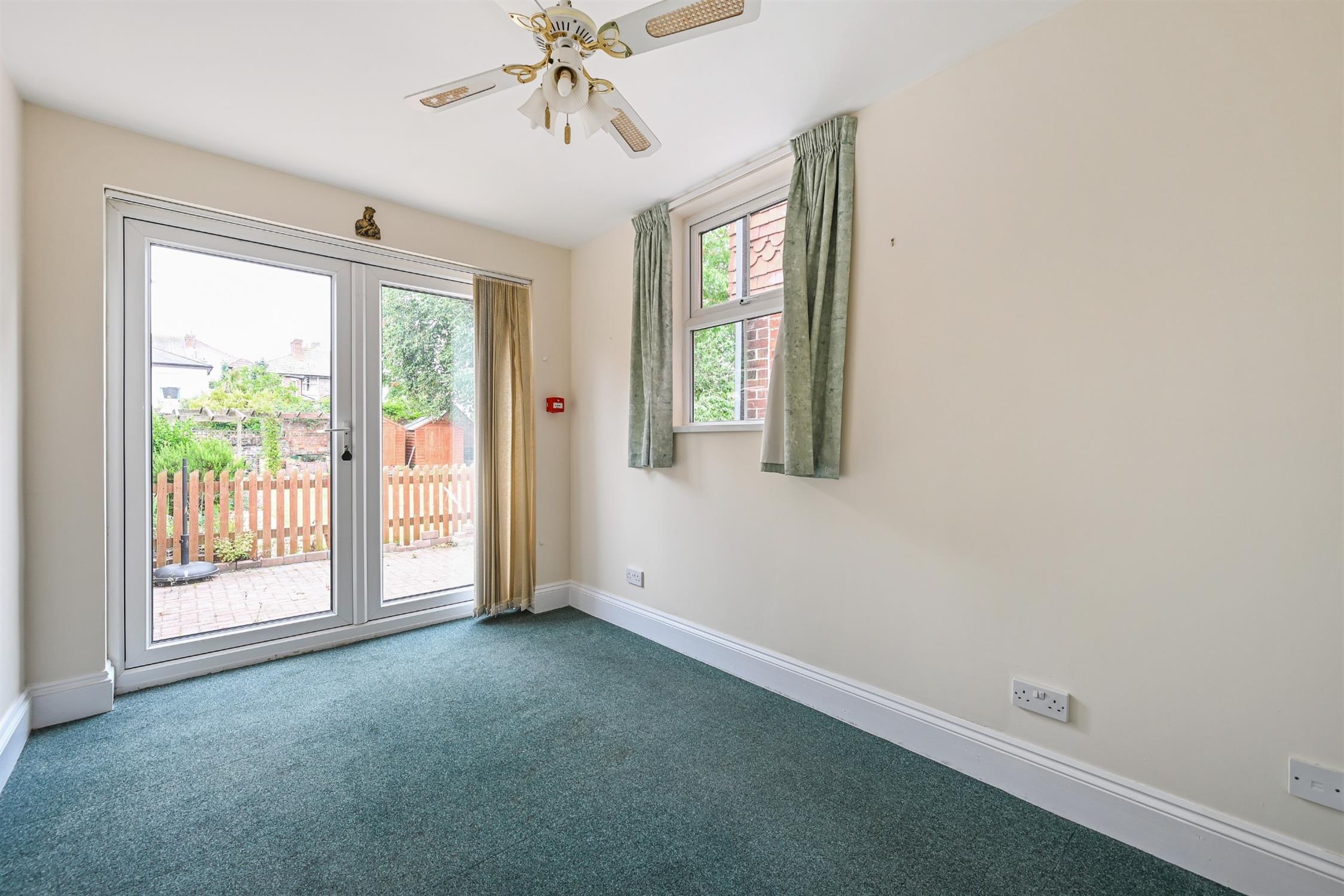 Smooth ceiling, double glazed side aspect window, double glazed double doors onto rear garden, radiator, fitted carpet.