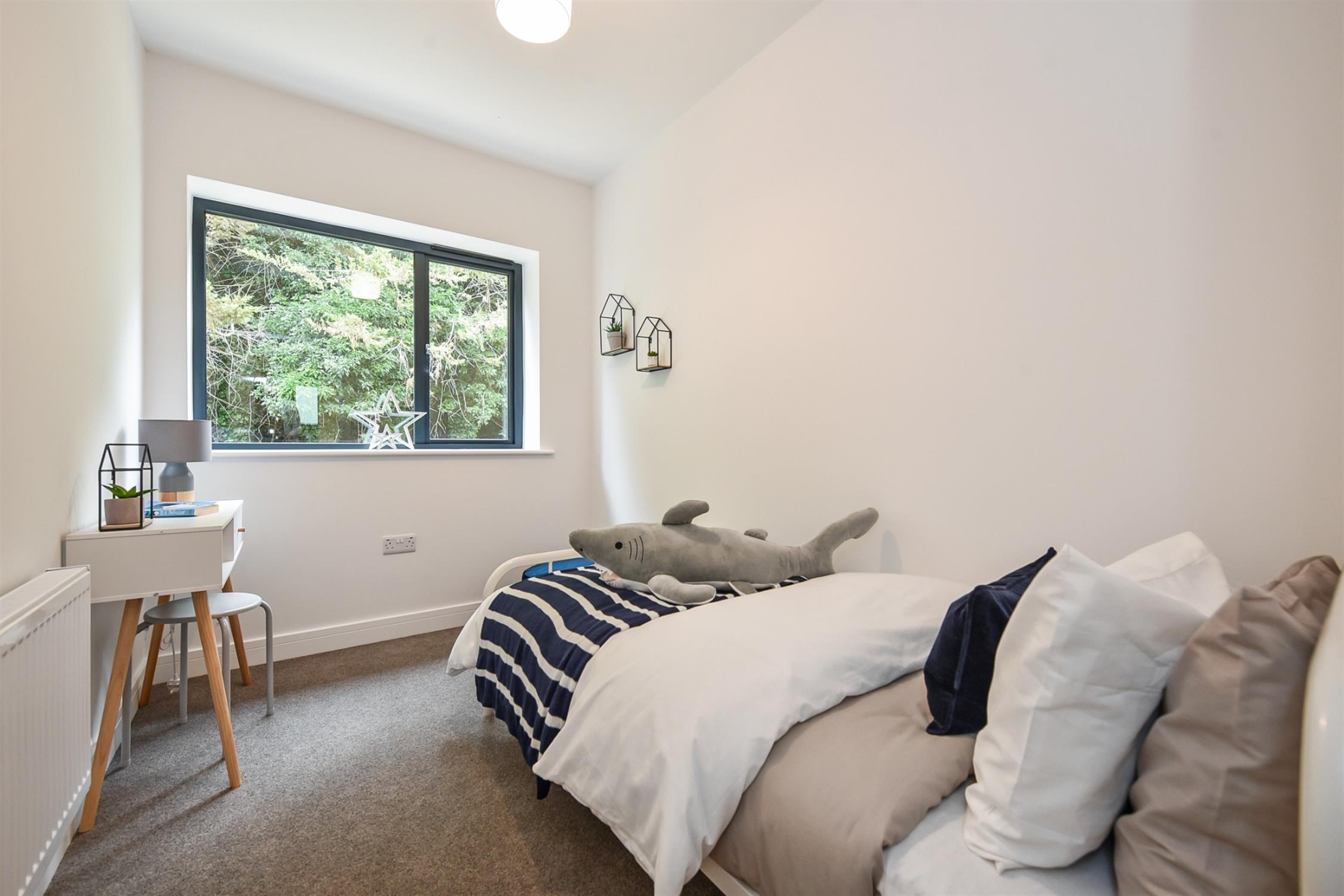 Upstairs, there are three bedrooms and a bathroom. Both bedroom one and two are doubles, and bedroom one also offers an ensuite fitted with waterfall shower, toilet, handbasin, and heated towel rail. The family bathroom is a white suite and is fitted with shower over bath, toilet, vanity unit, and a full-length heated towel rail.