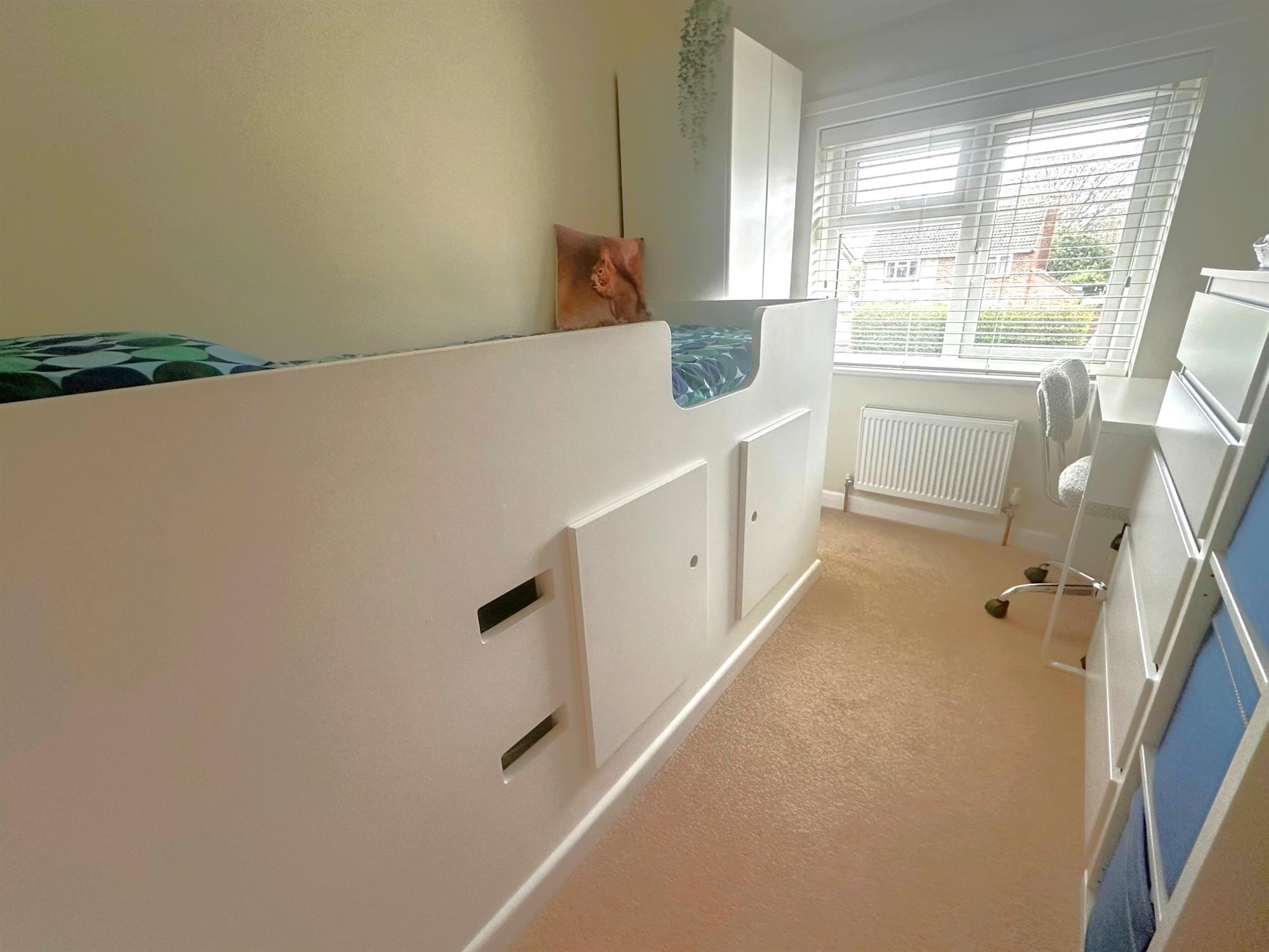 Triple glazed window to front aspect. Built-in bed with storage below. Radiator.