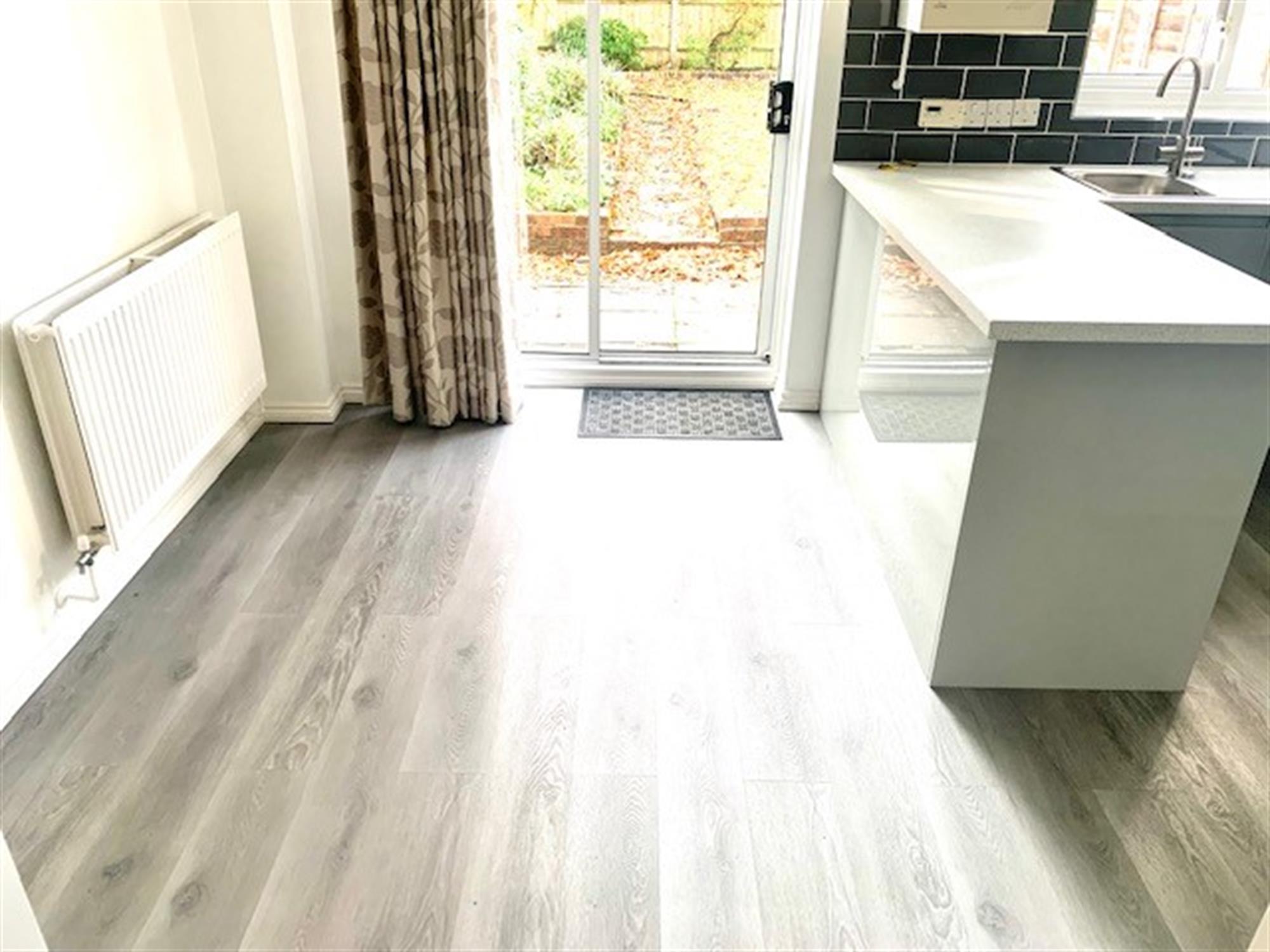 BREAKFAST AREA - Patio door to garden and cupboard under the stairs.