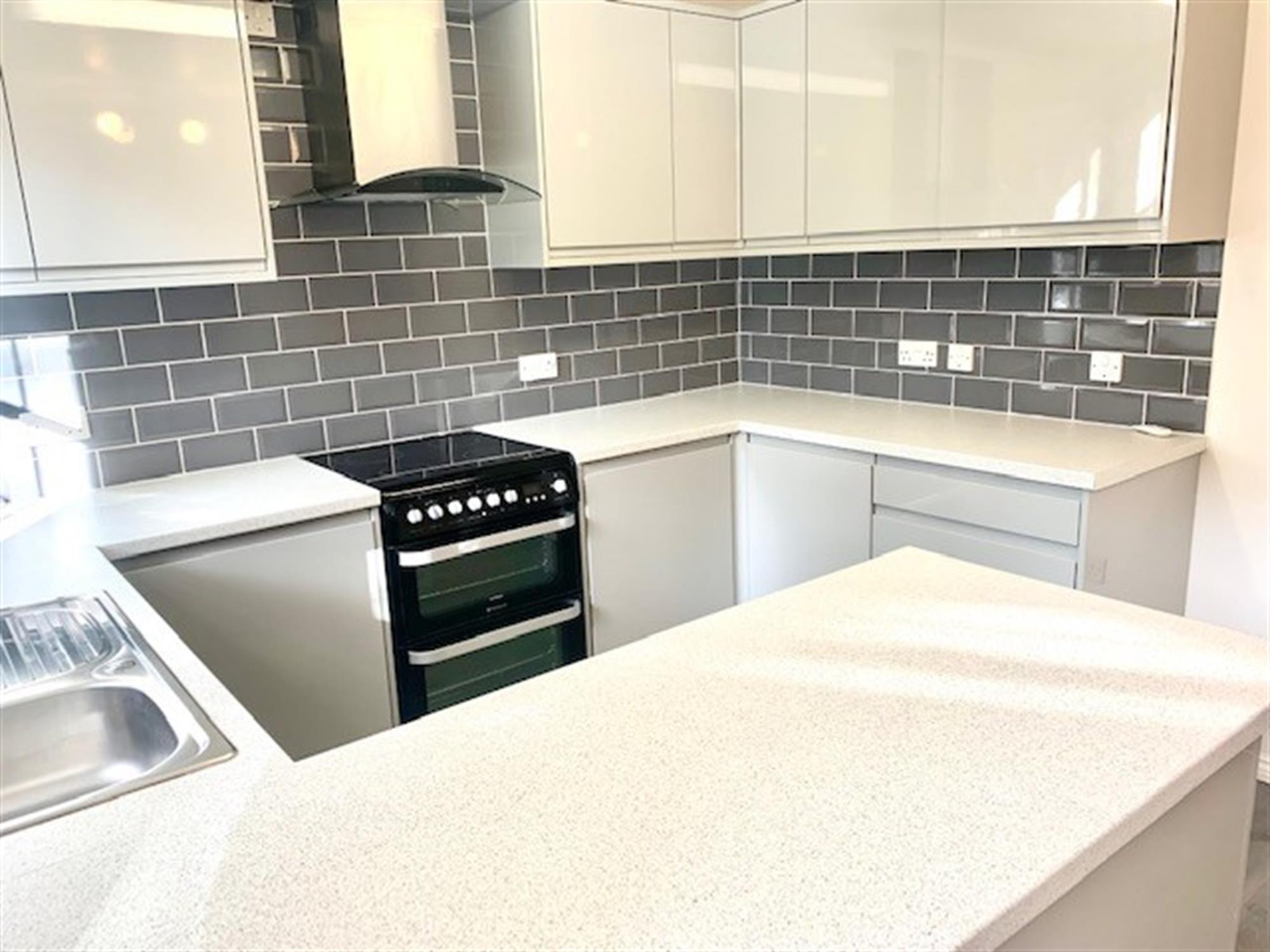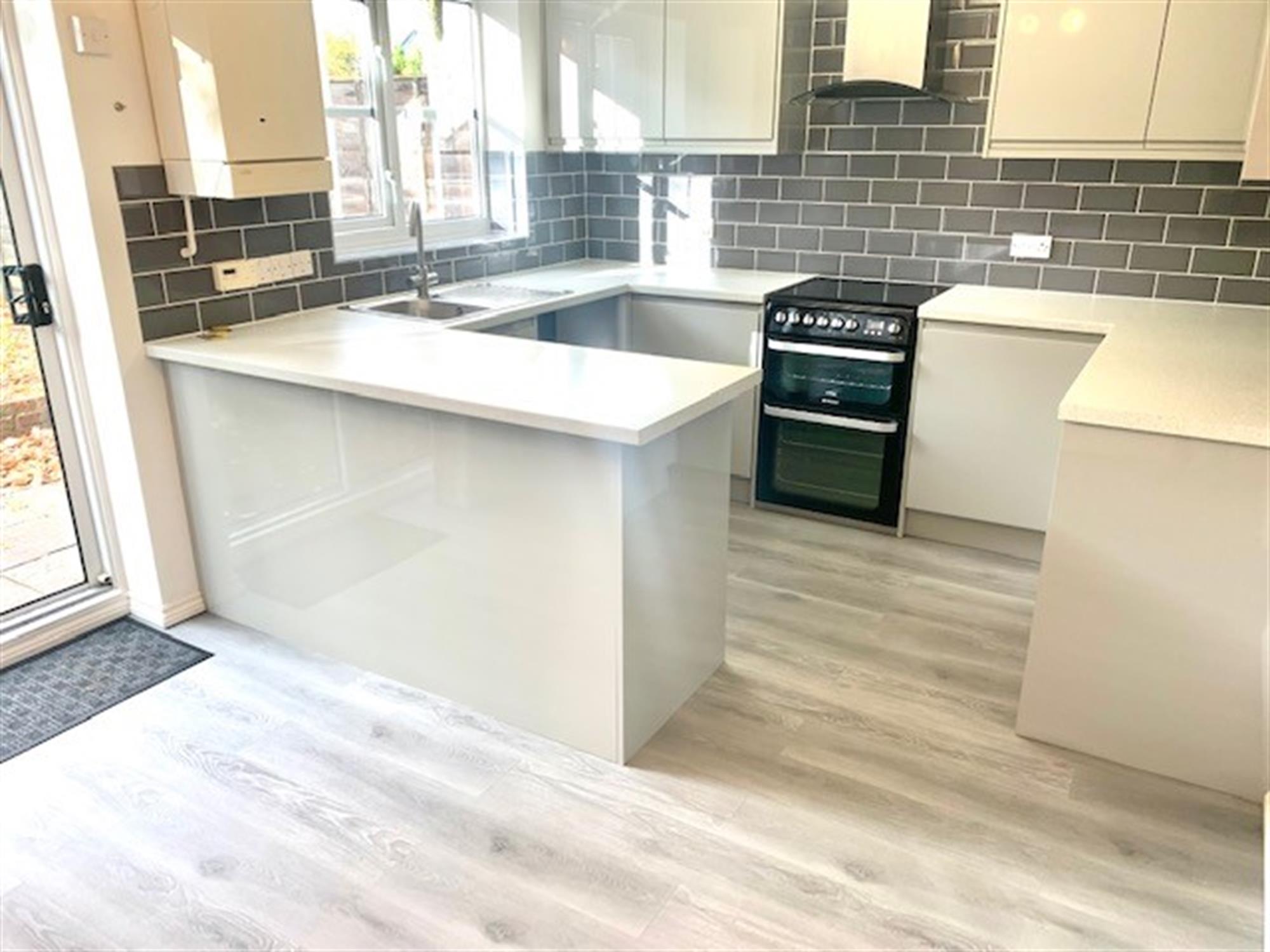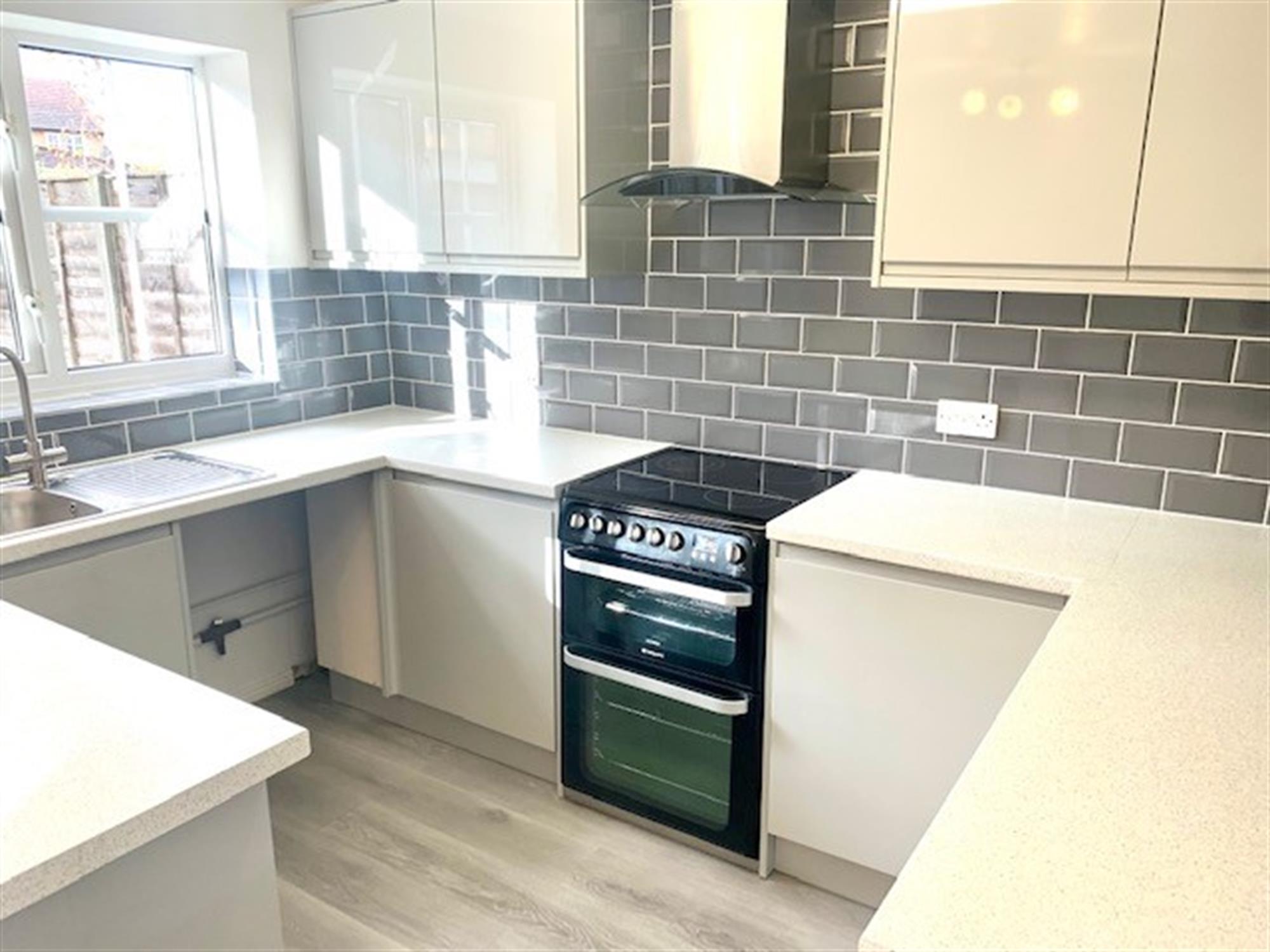 KITCHEN/BREAKFAST - Modern grey kitchen wtih electric oven, space for washing machine and space for fridge/freezer. Window overlooking garden.