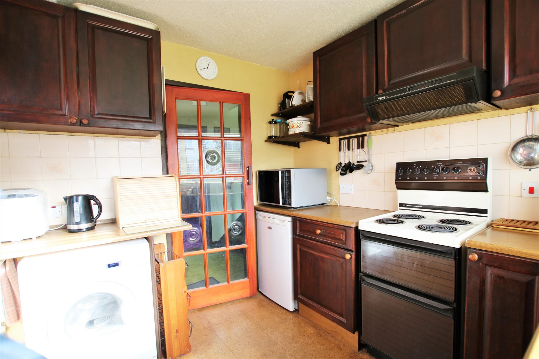 Range of eye level and base units with tiled splashbacks and roll edge work surfaces over. Inset one and a half bowl single drainer sink, space and plumbing for washing machine, space for cooker and wall mounted gas boiler. Double glazed window to front aspect and double glazed door to side.