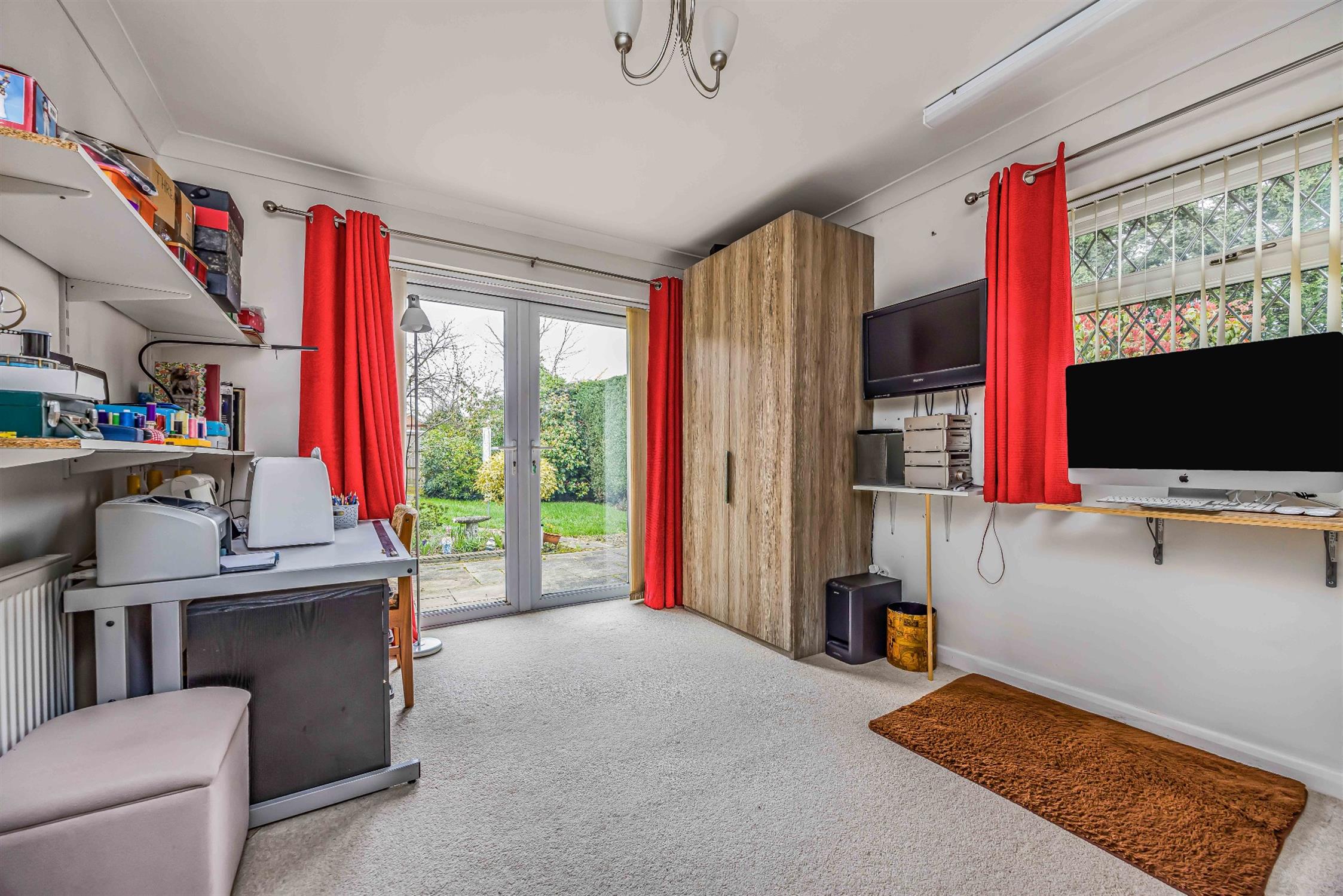 Smooth plastered ceiling, coving, double glazing to the rear aspect, radiator, carpeted flooring.