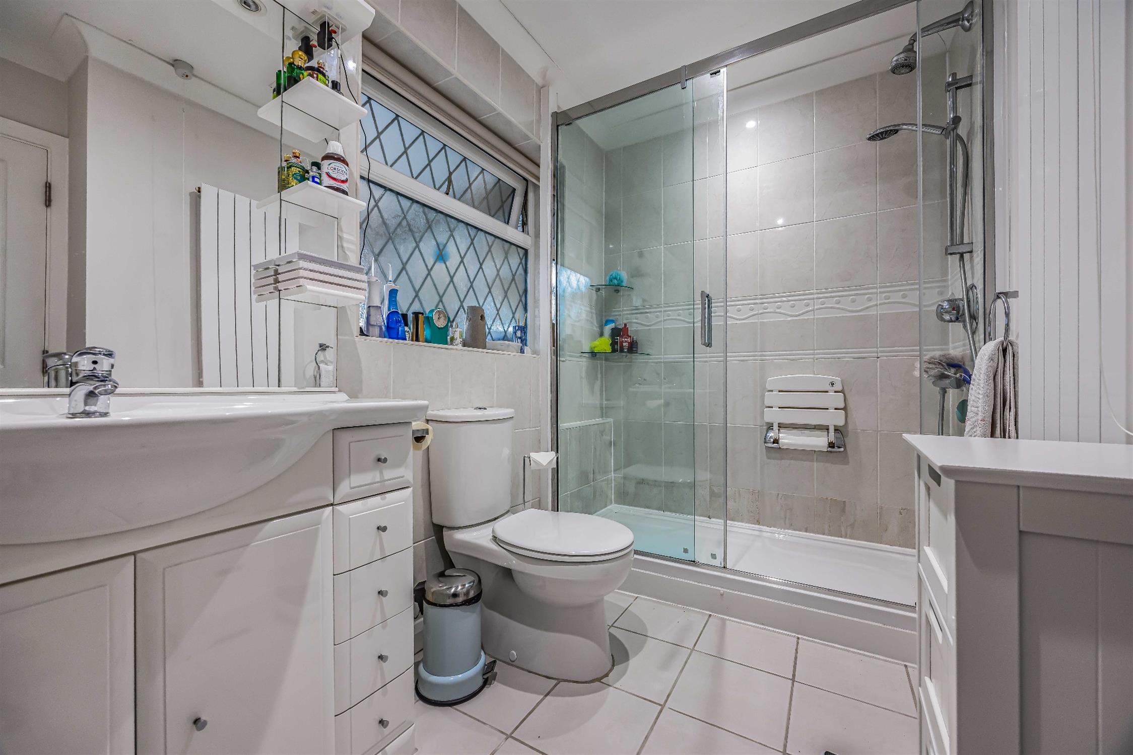 Smooth plastered ceiling, coving, obscure double glazed window, a three piece shower suite comprising, spacious walkin shower with rainfall shower head over, low level WC, ceramic sink, radiator, tiled flooring.