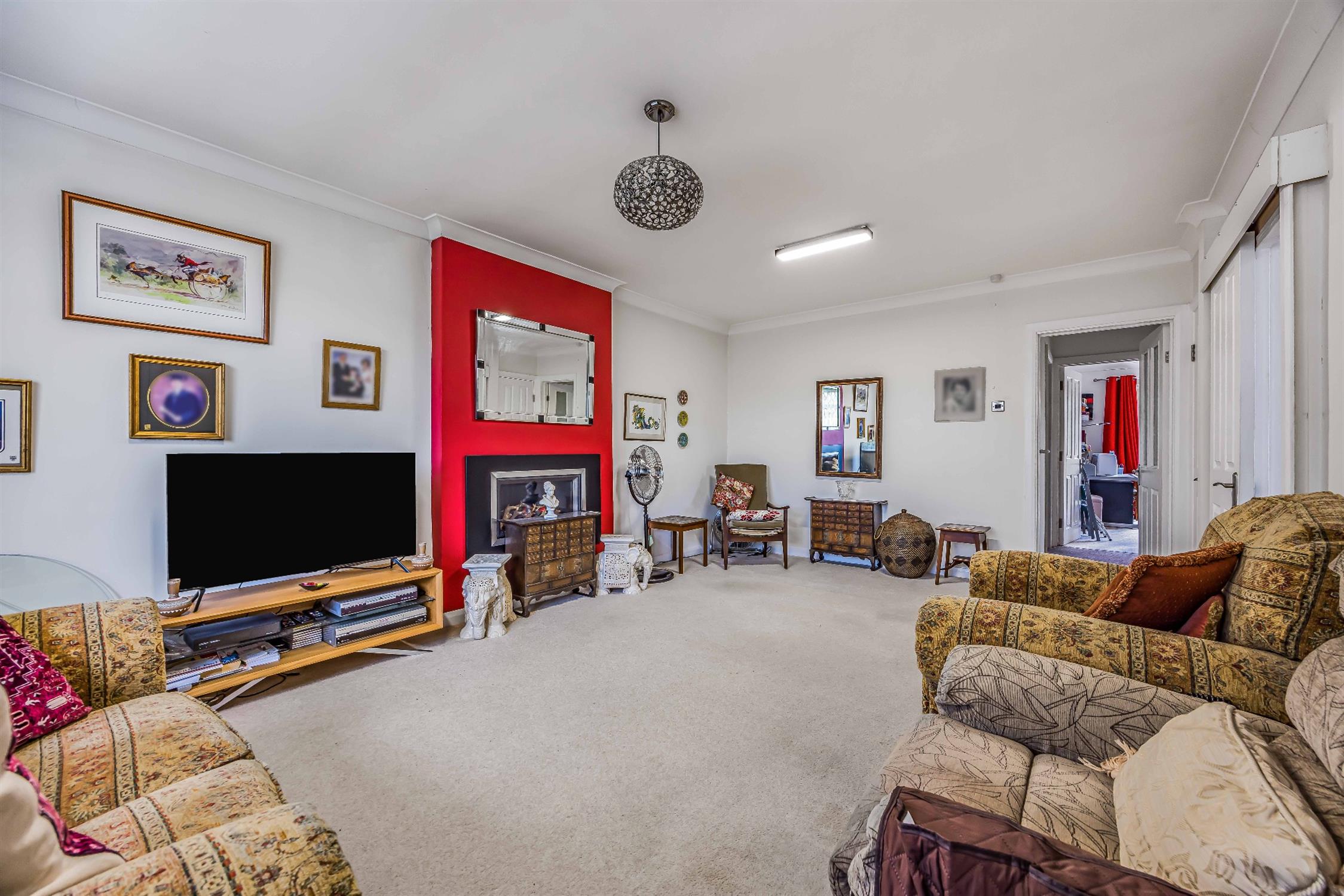 Smooth plastered ceiling, coving, double glazing to the front aspect, radiator, electric fireplace, carpeted flooring.