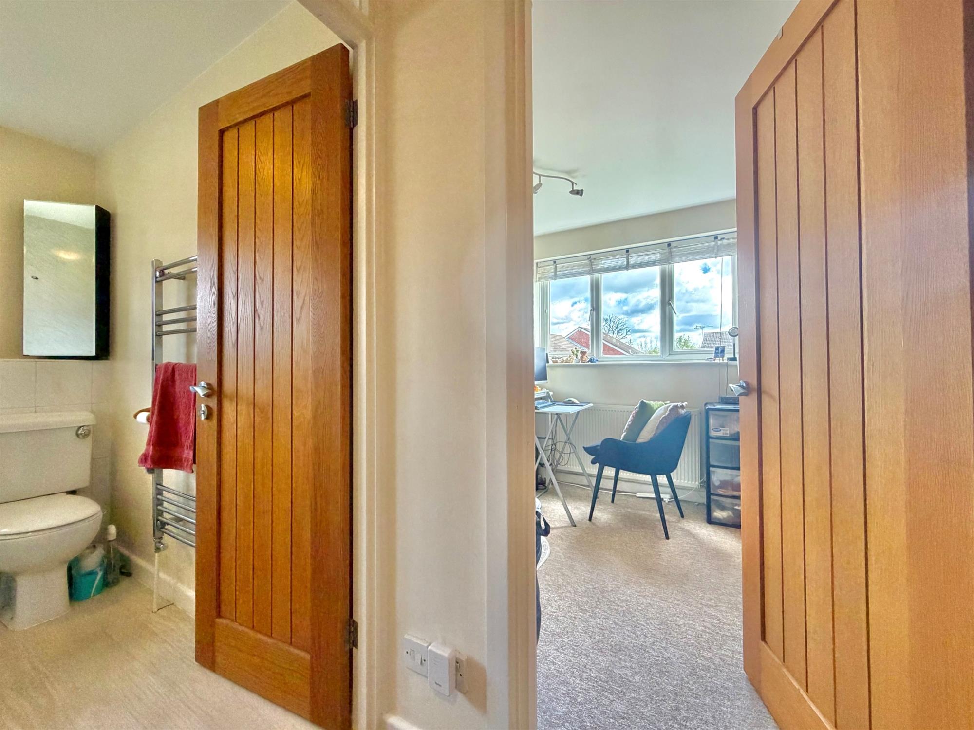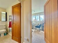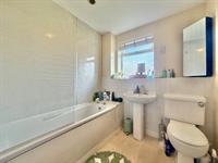 Smooth plastered ceiling, double glazed obscure window to the front aspect, a three piece bathroom suite comprising, low level WC, ceramic sink, bathtub with mains shower over, extractor, heated towel rail, linoleum flooring.