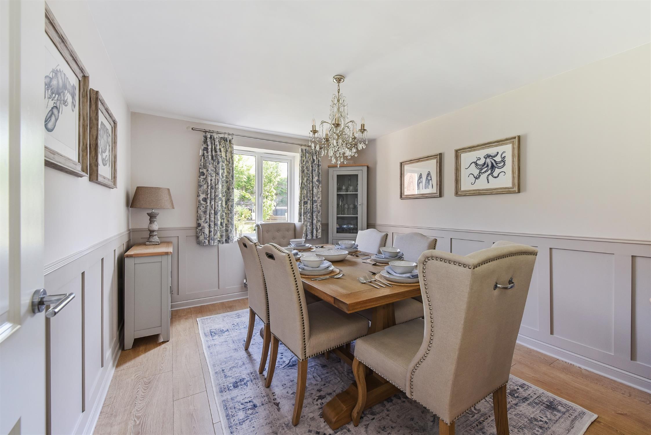 Double glazed windows overlooking landscaped rear garden. Attractive half panelled walls. Engineered Oak flooring. Radiator.
