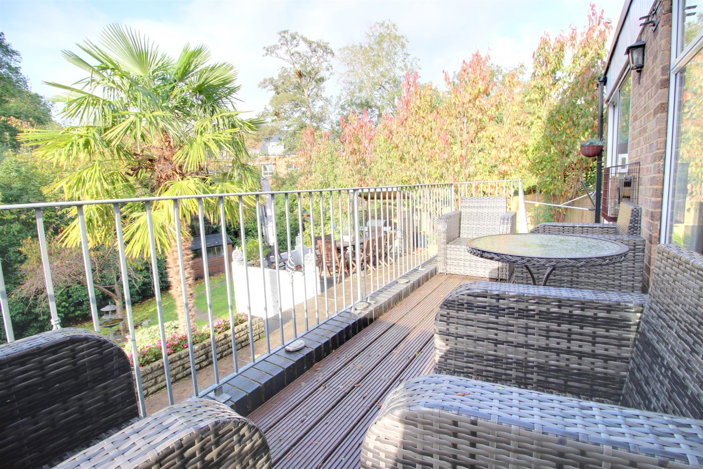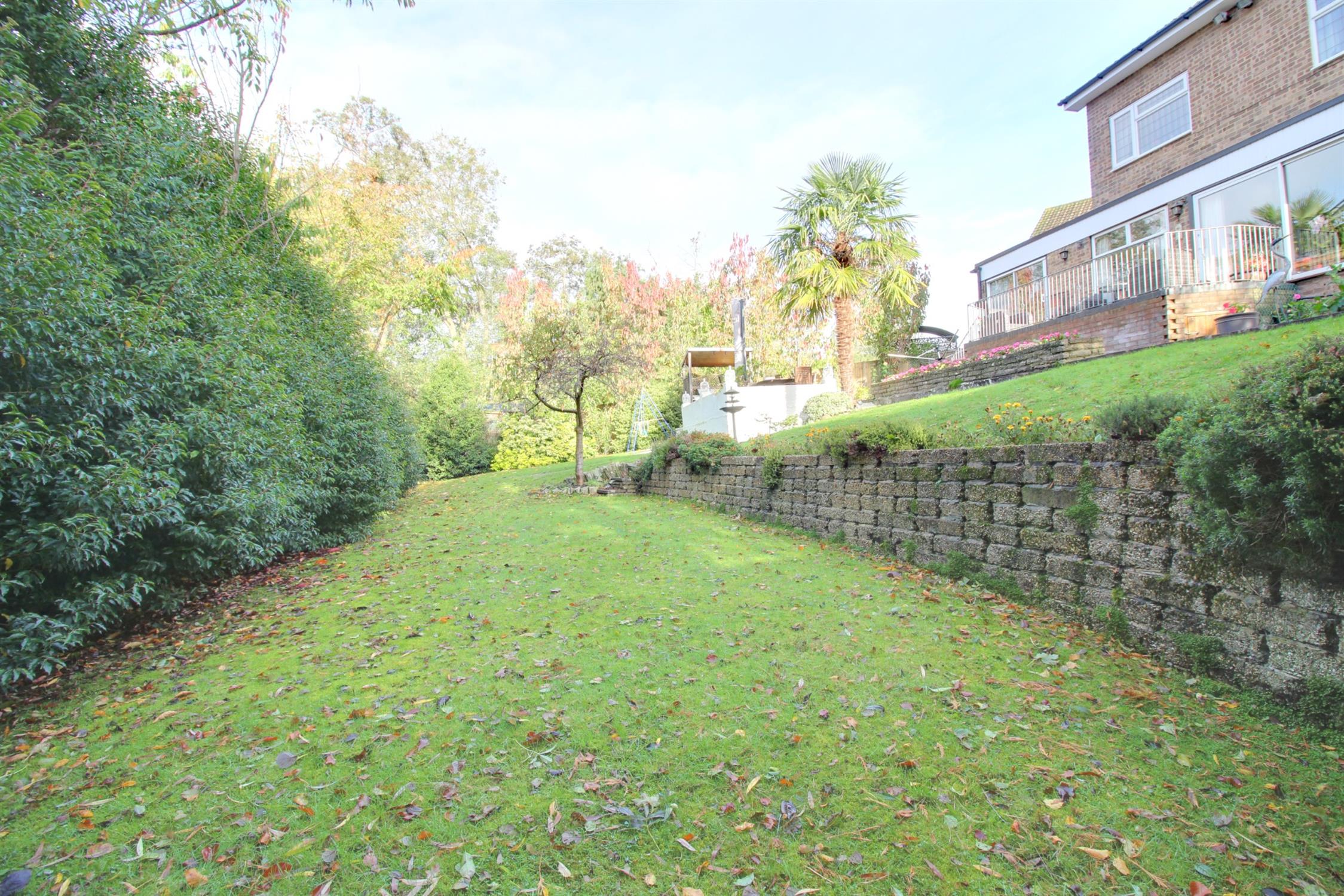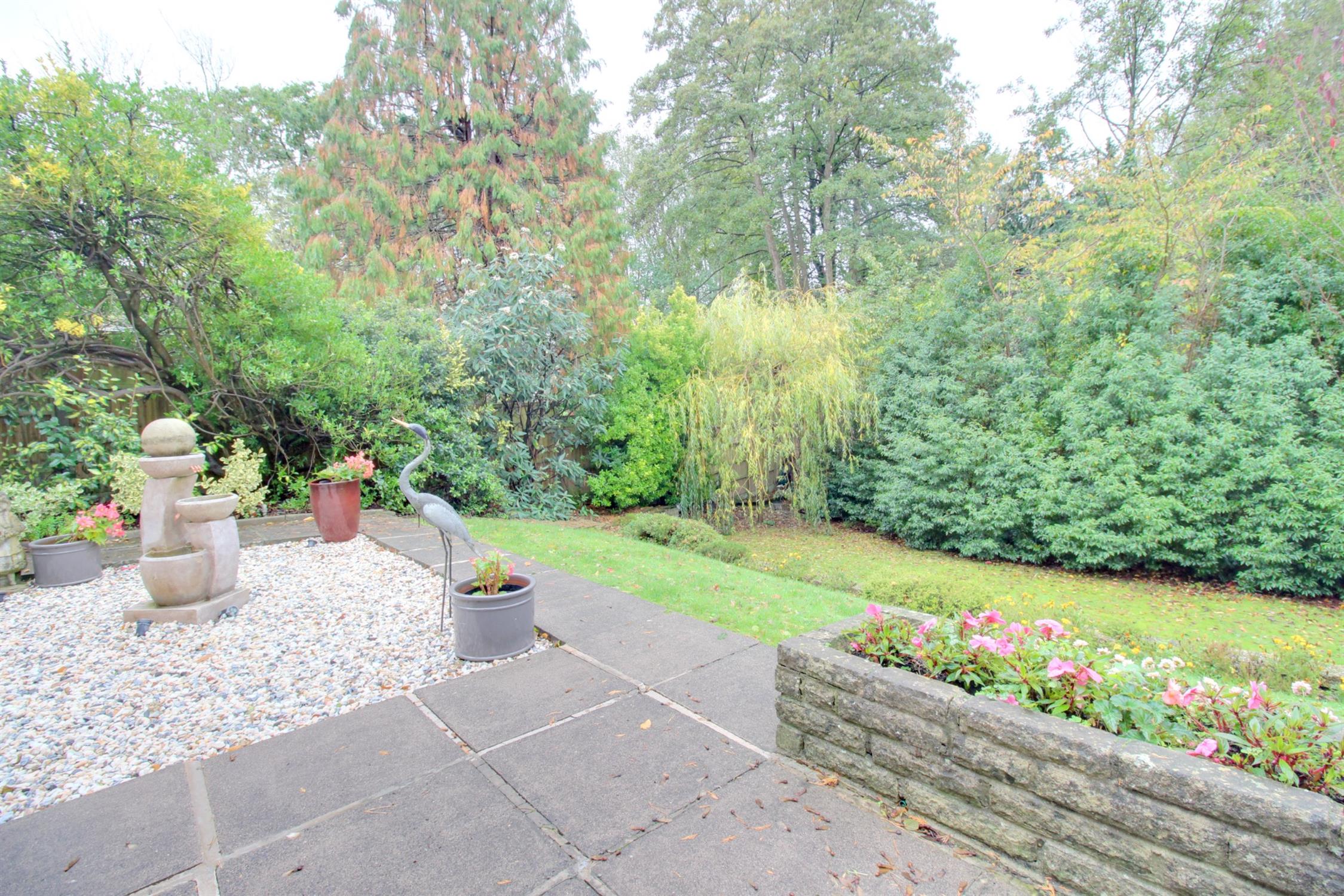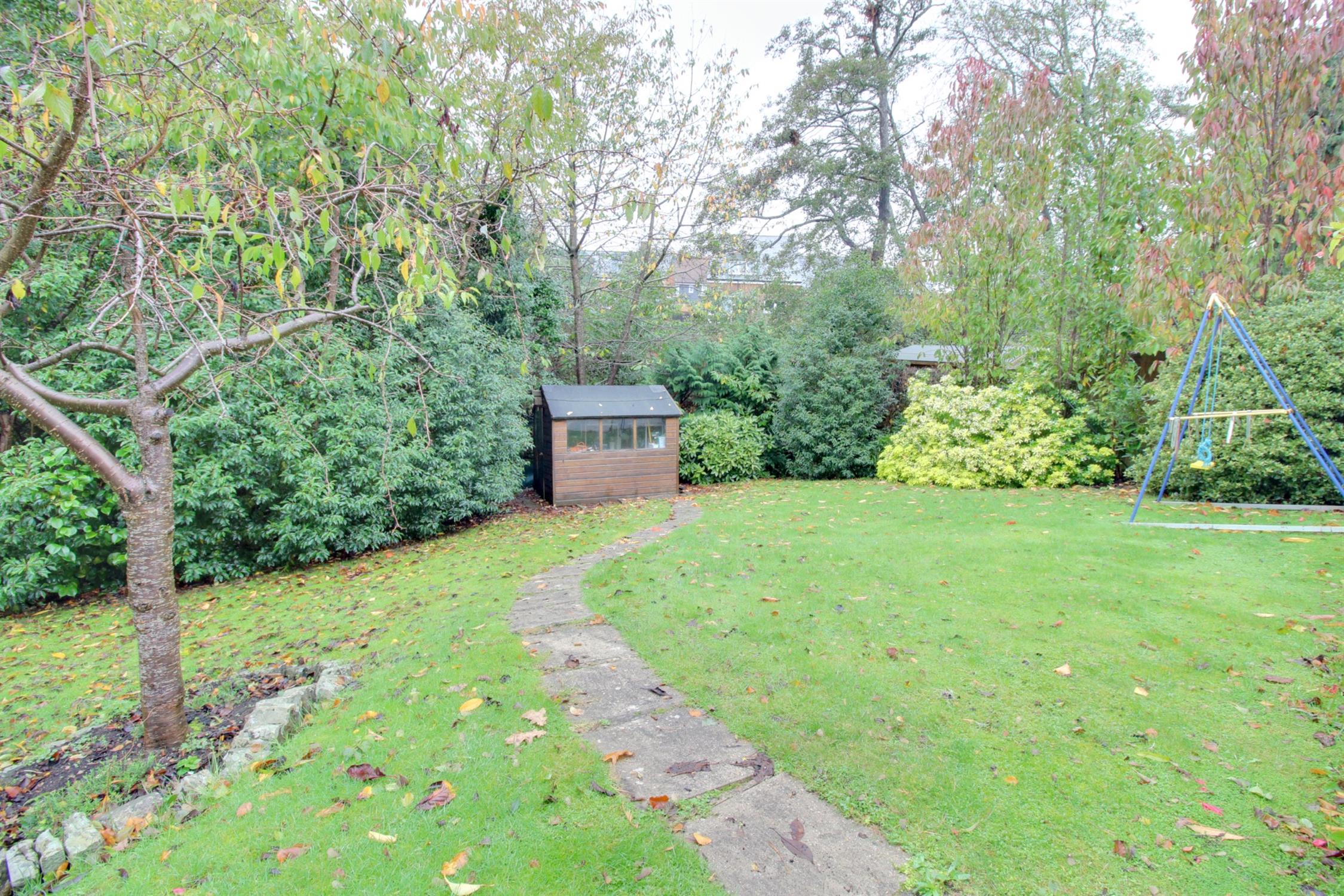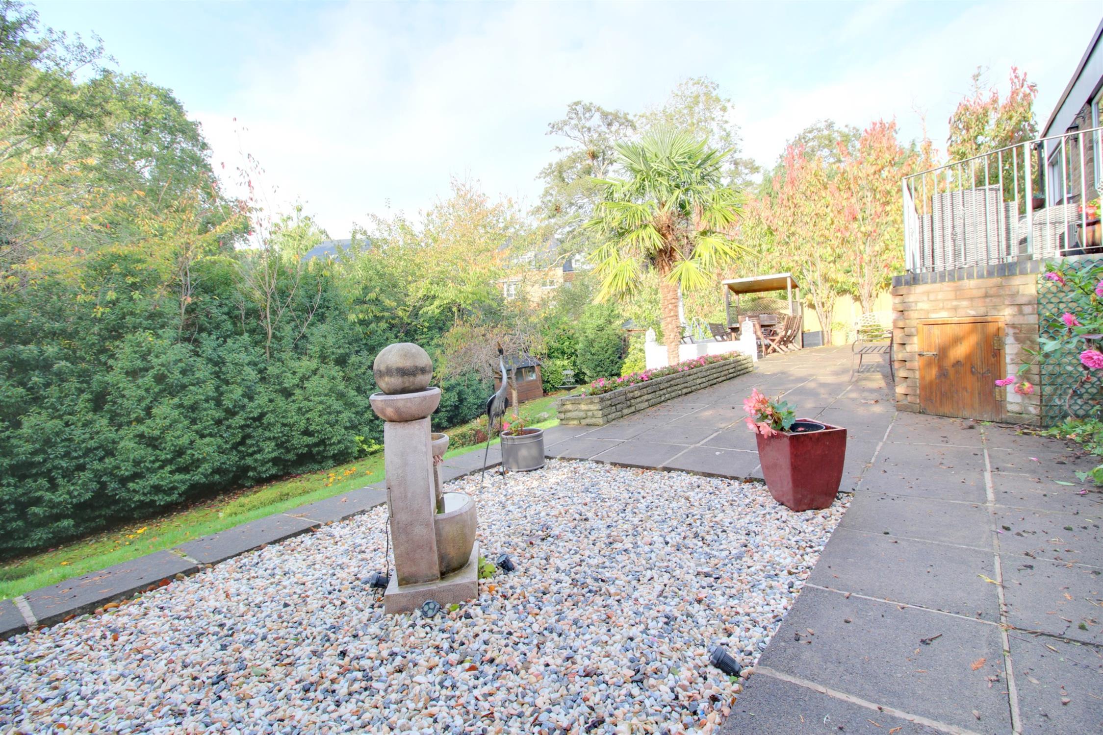The rear garden is a particular feature of this home, offering a high degree of privacy and of excellent proportions, backing onto a stream. Raised decked balcony, large patio/BBQ patio area, shingled bed with raised flower and shrub borders, greenhouse, and outside tap. Steps down to a lawned area with mature hedges and trees, wooden shed.