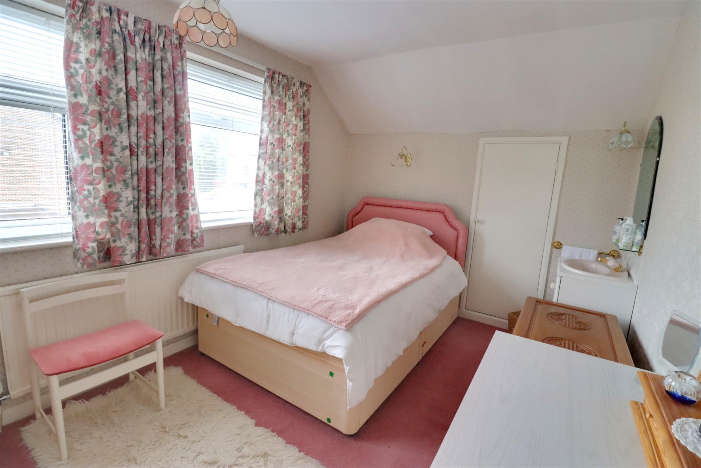Two double glazed windows to front, radiator. Wash hand basin with mixer tap, eaves storage cupboard with hanging rail.