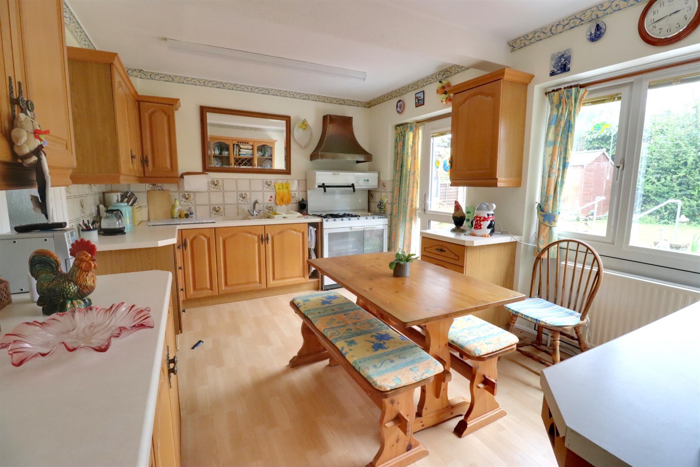 Double glazed window and door to rear garden. Matching range of wall and base cupboards with drawer units and roll edge work surfaces over, inset stainless steel one and half bowl single drainer sink, mixer tap. Space for large gas/electric cooker, radiator. Tiled splashbacks, door to -