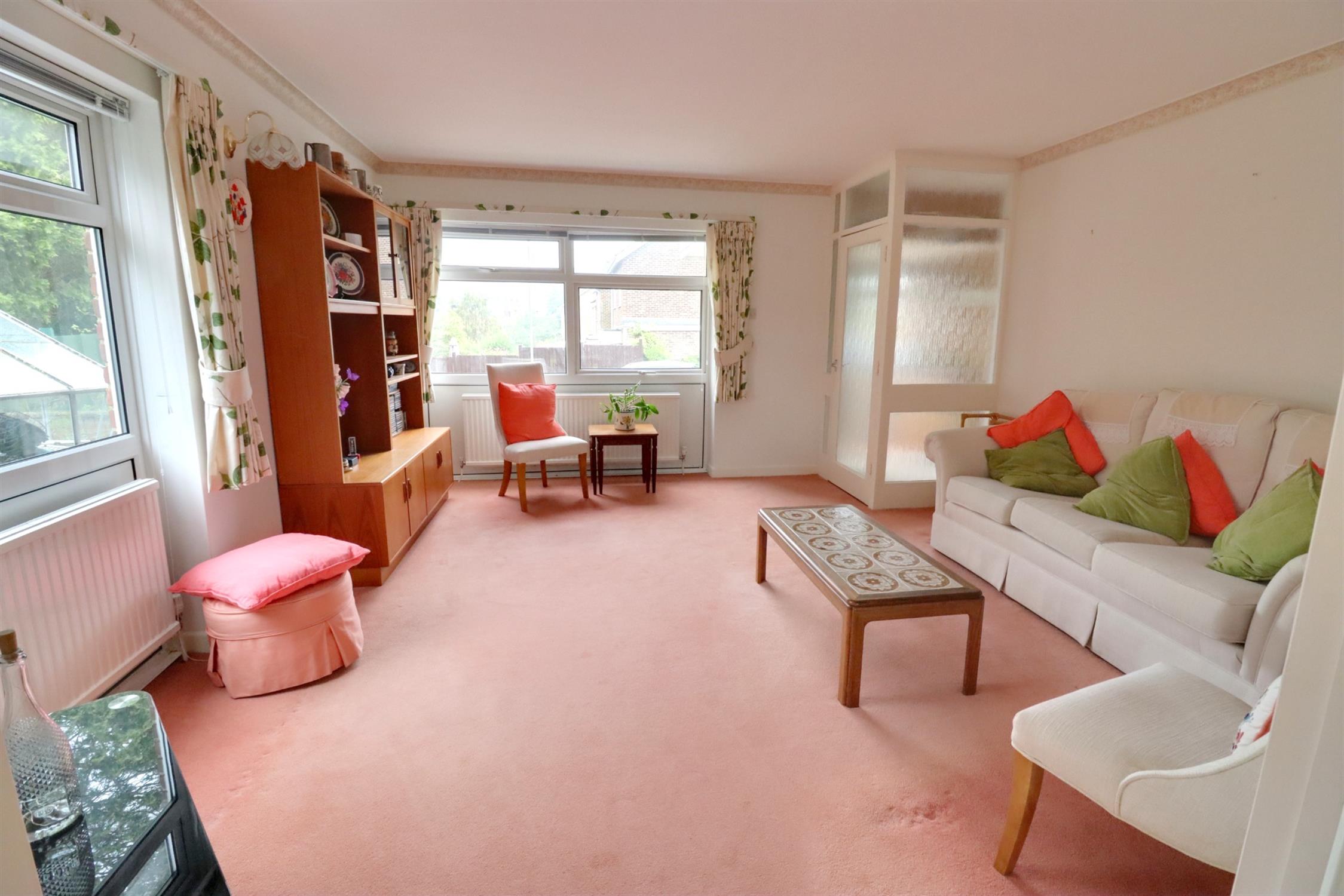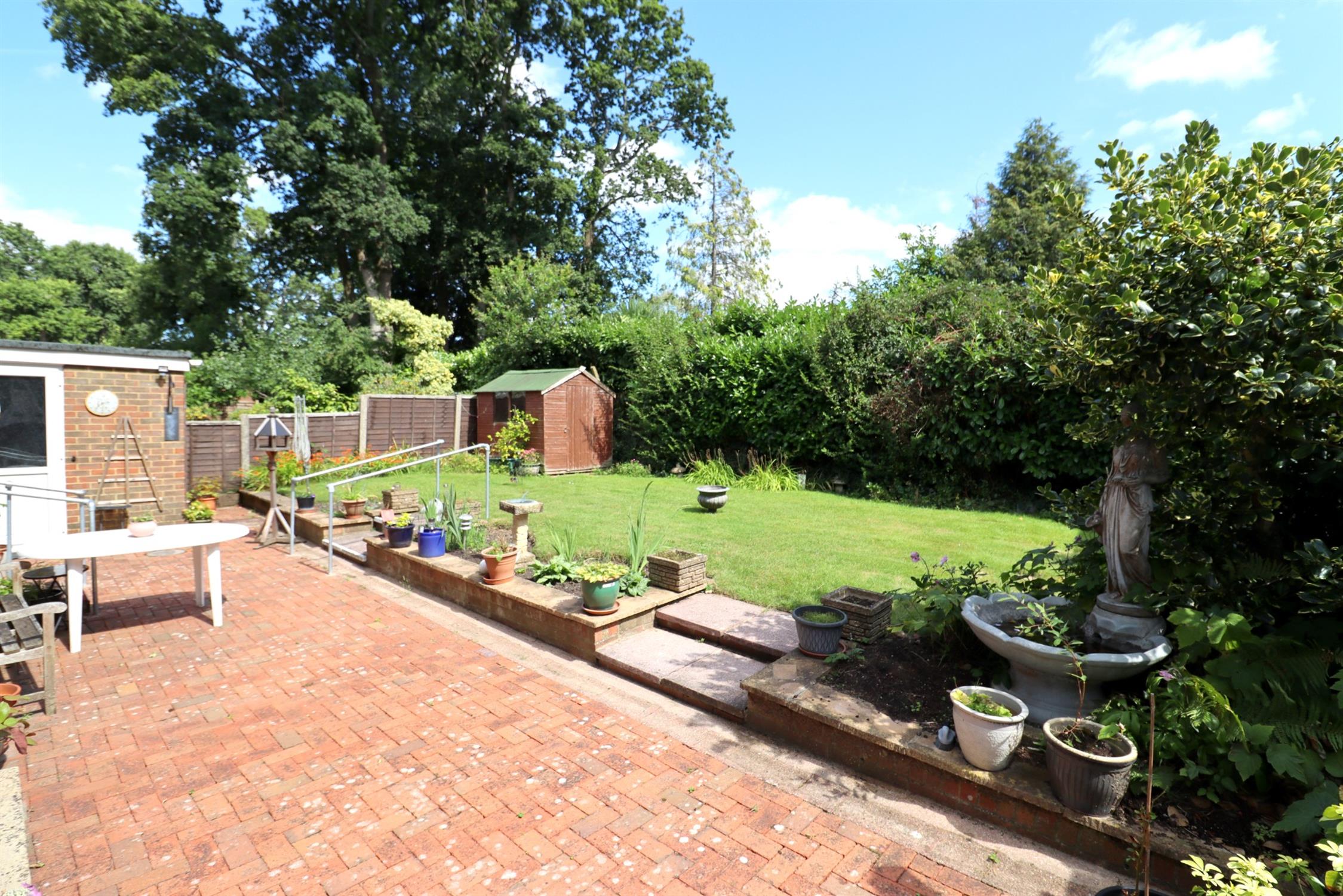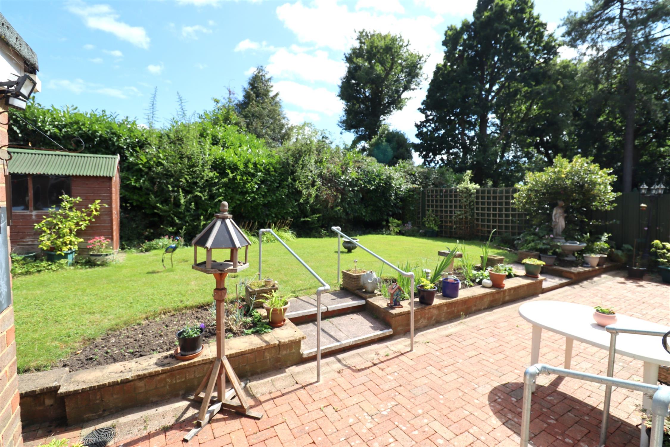 Enclosed, bricked patio area leading to an area of lawn, planted borders, mature hedging, greenhouse with paved patio to side and gate to side giving access to parking for approximately two vehicles and access to -