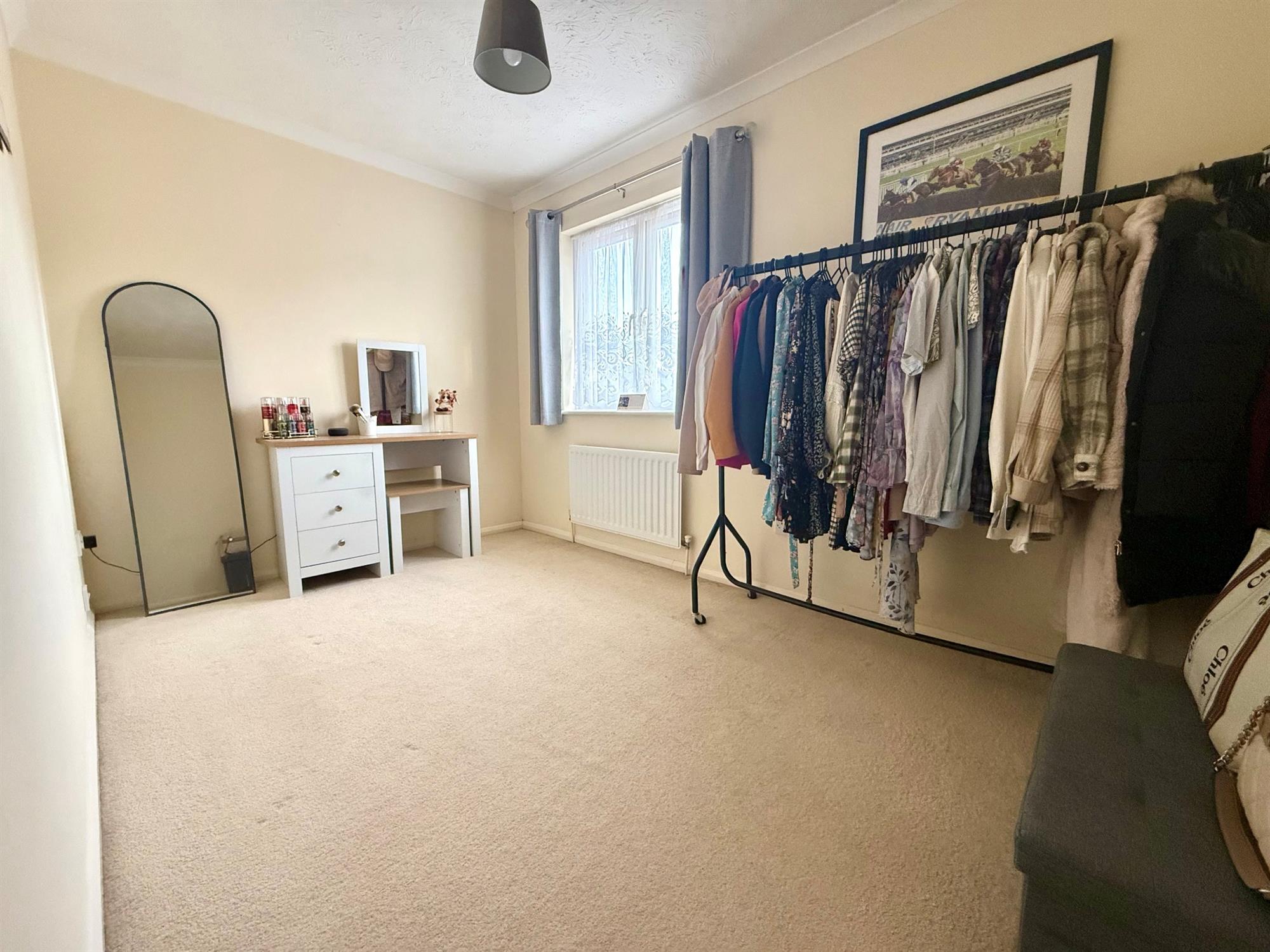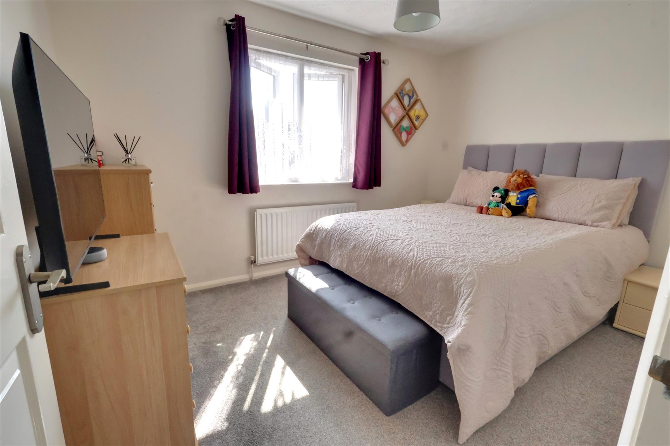 Allocated driveway parking for two vehicles, garden frontage laid to lawn with borders, gas and electric meters.