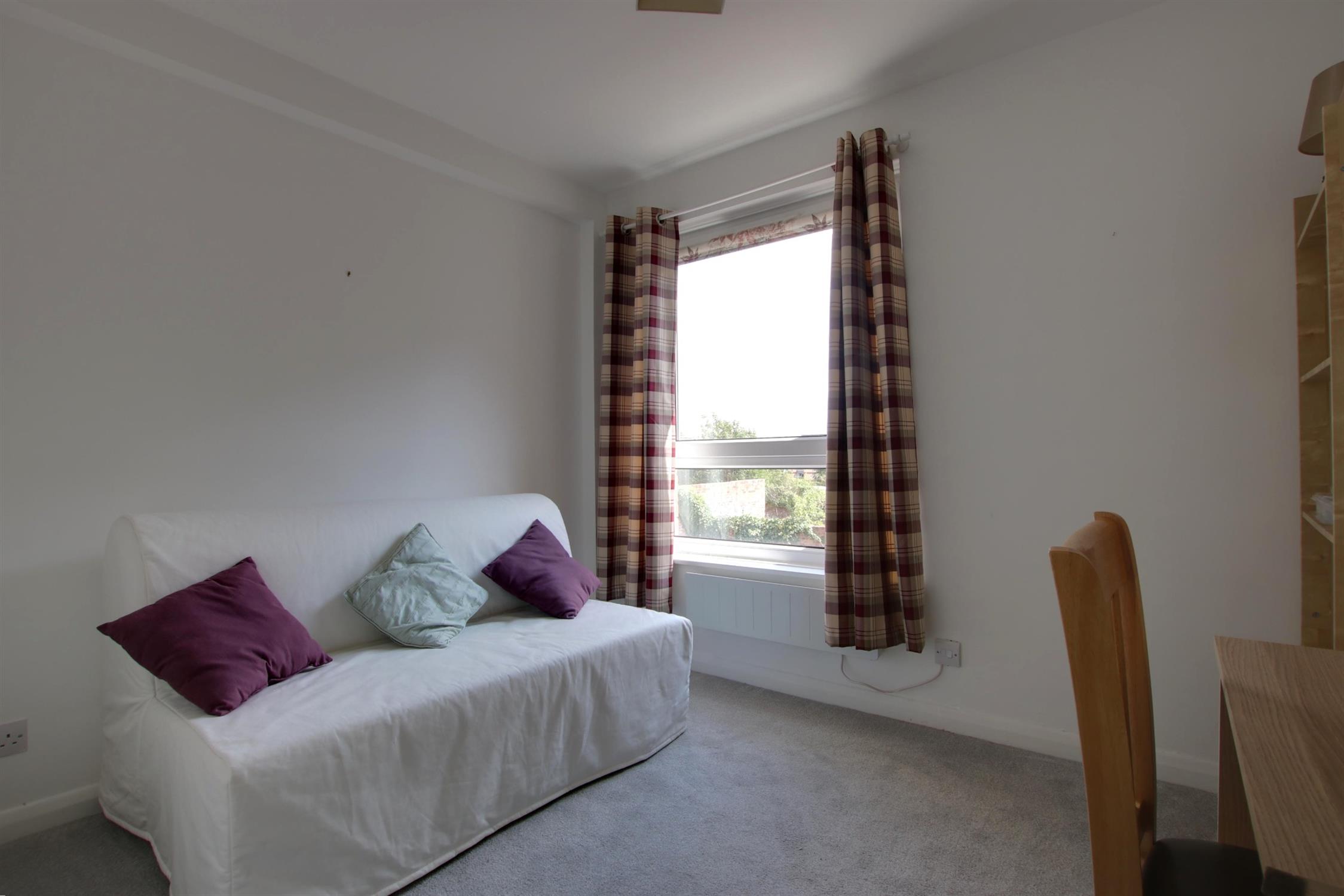 Smooth ceiling. Double glazed window to side aspects. Carpets. Wall mounted electric heater.