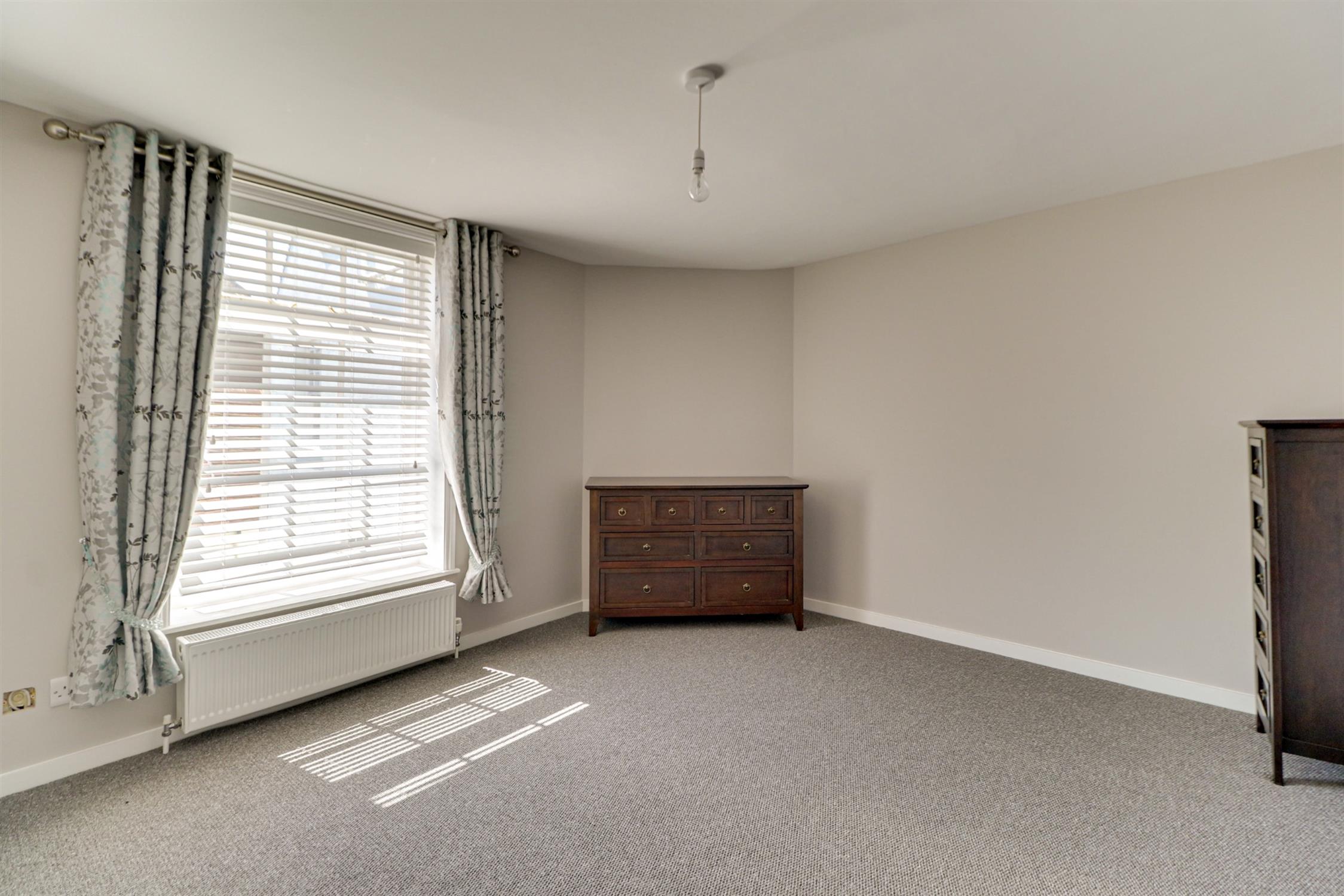 Smooth ceiling, double glazed bow windows, radiator, exposed floorboards.