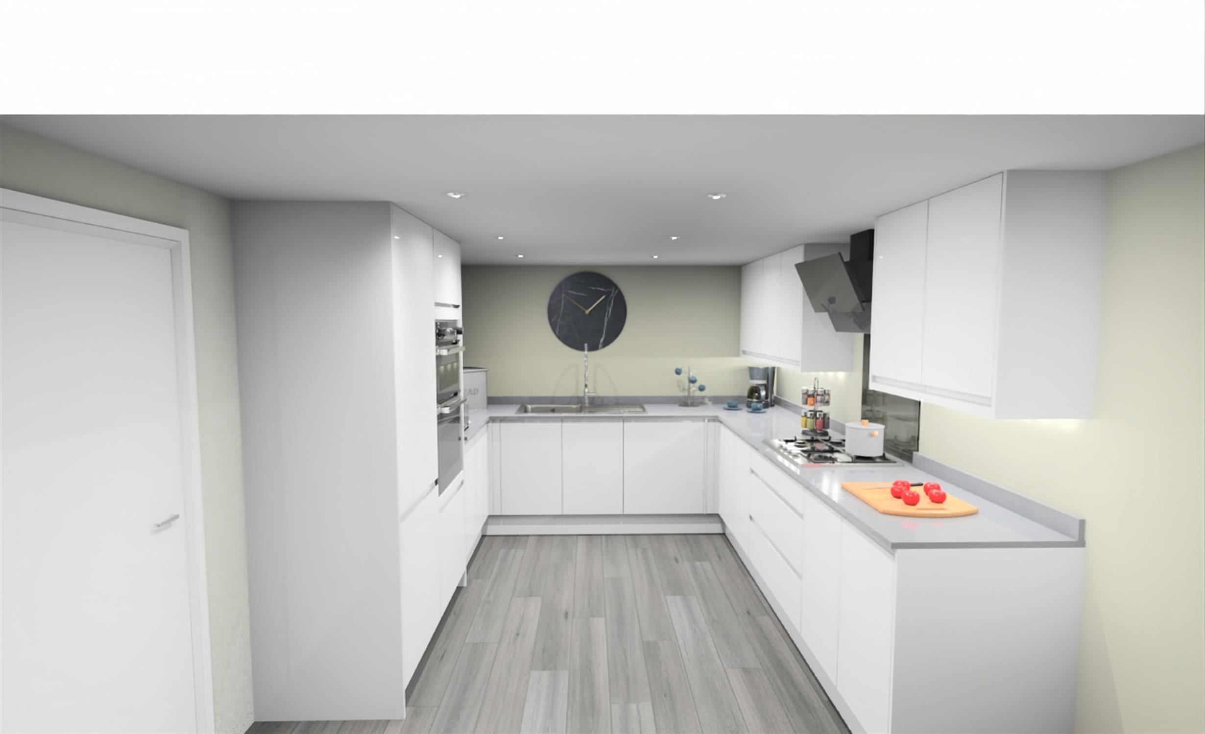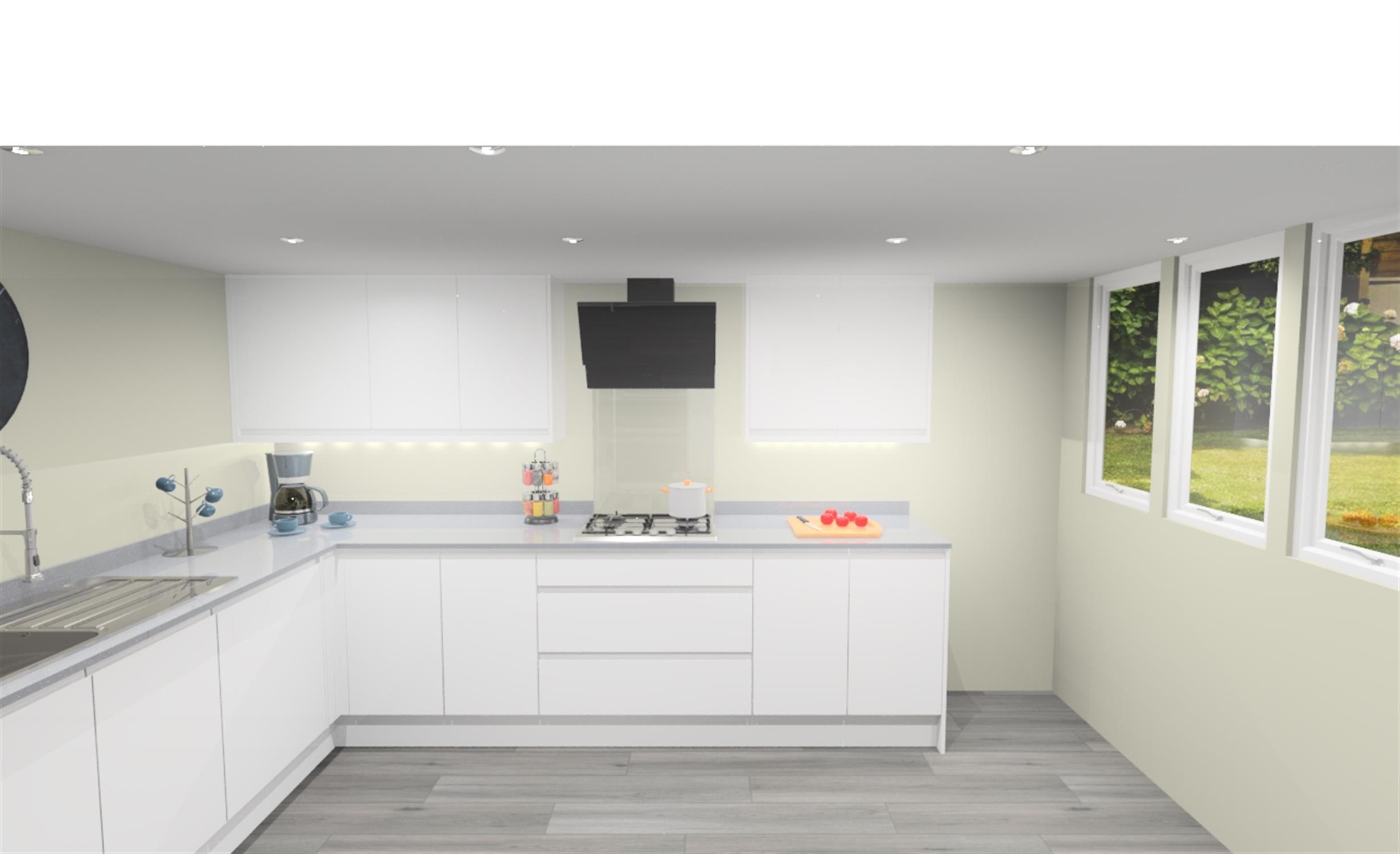 Double glazed windows and door to rear garden. New converted space and site of proposed kitchen.