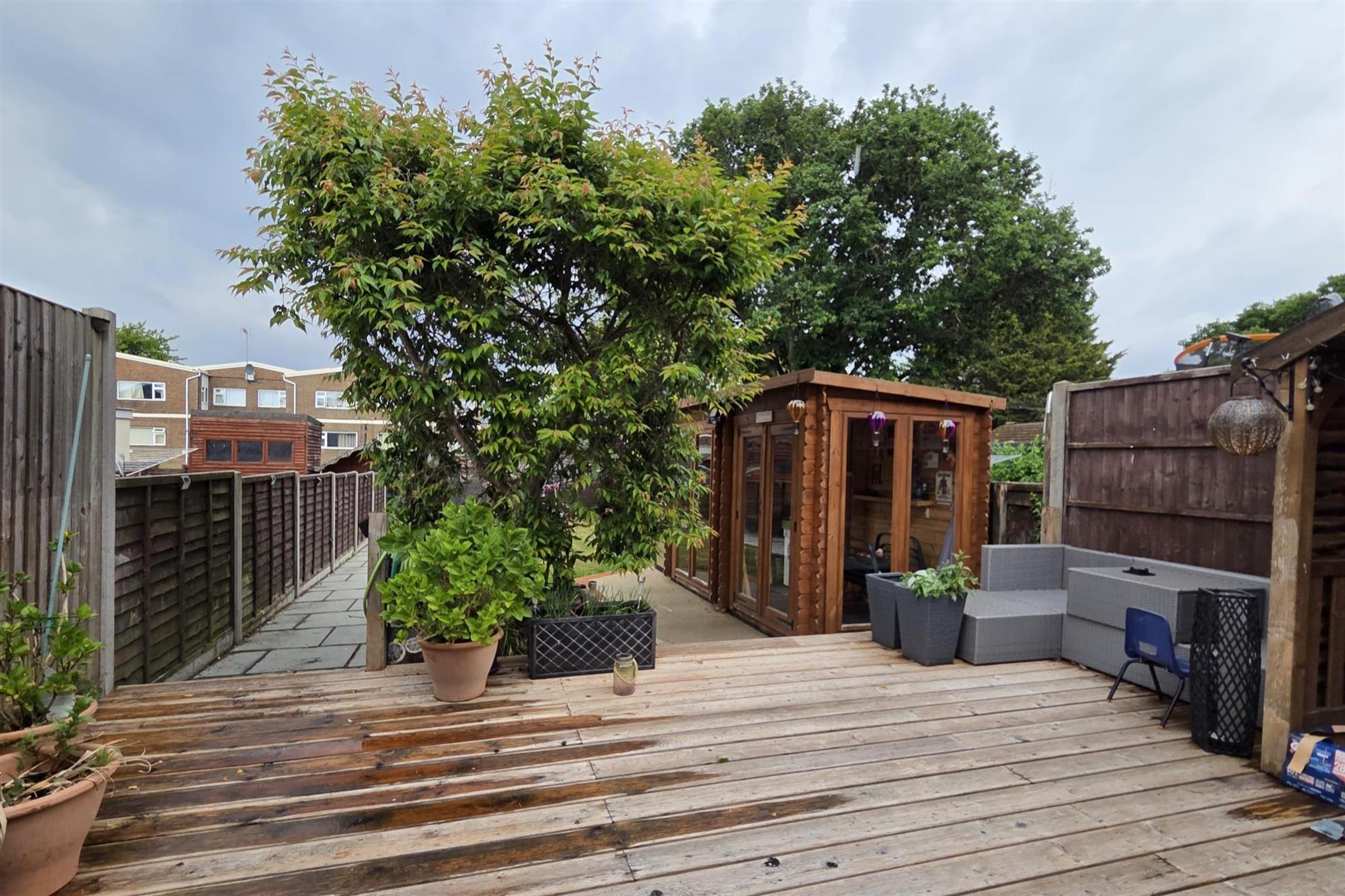 The sizeable rear garden has a large initial decked area with outside power and tap. Summerhouse. Path leading to the bottom of the garden with the remainder of the garden being laid to lawn. Timber garden shed. Chicken coup and rear gated pedestrian access to the parking area. At the bottom of the garden, there is a parking area with access from a service road.