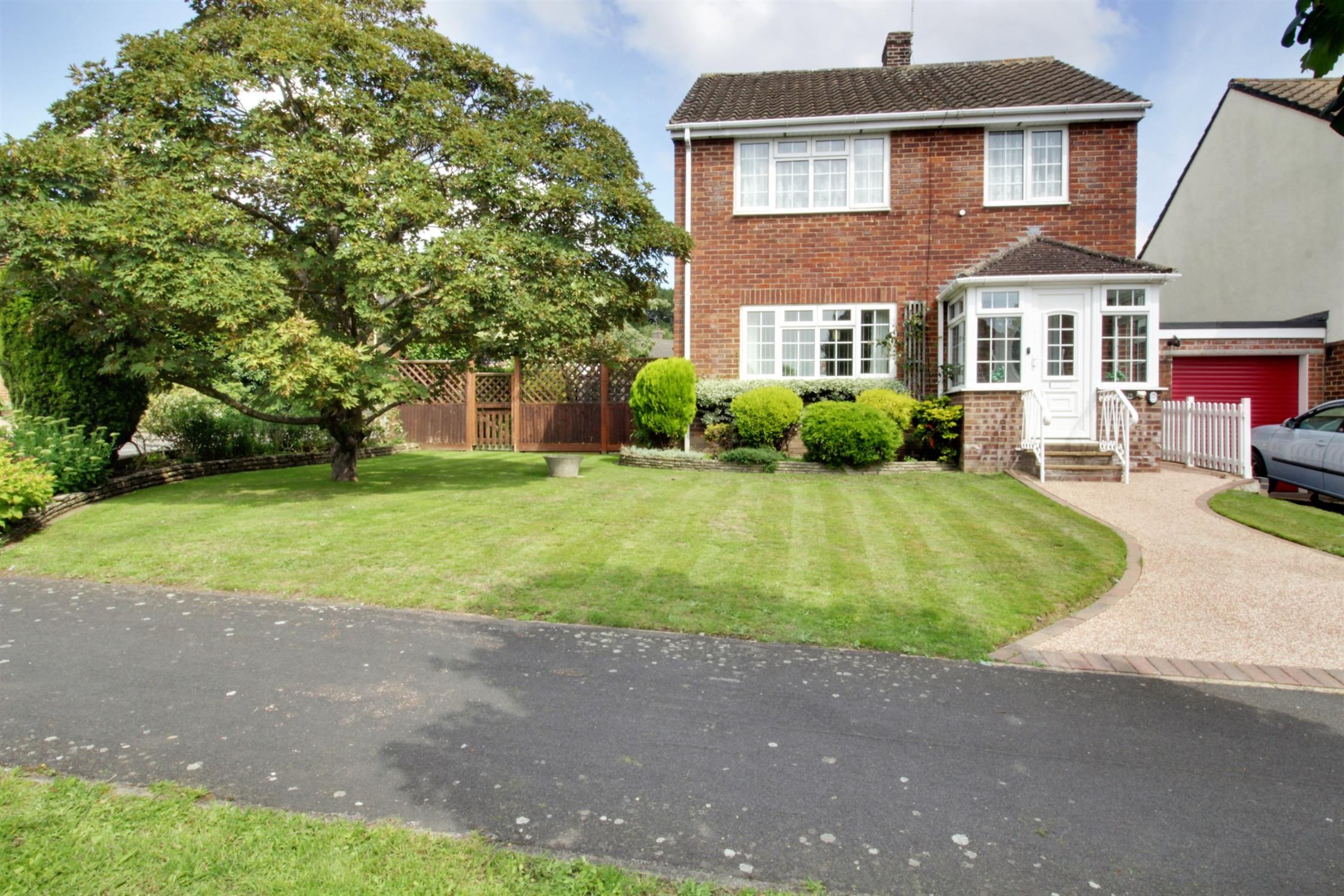 NO ONWARD CHAIN. Internally, the property offers: entrance hall, cloakroom, lounge/diner, kitchen and small conservatory. On the first floor are three bedrooms and re-fitted shower room. Externally, there are gardens to the front, rear and side with a double garage and block paved double width driveway. EPC rating D.