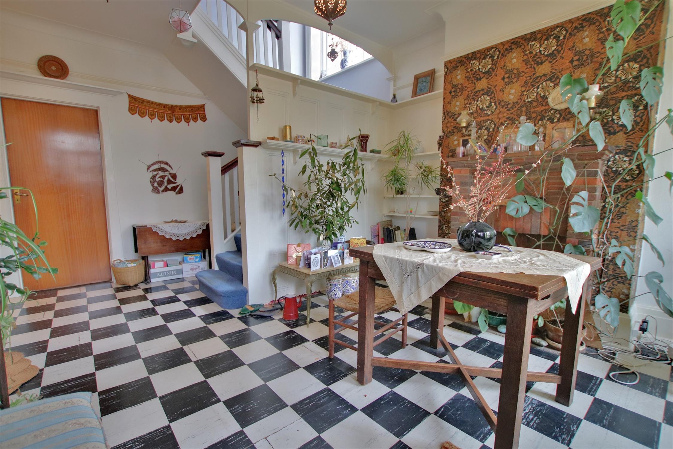 Double glazed bay window to front aspect. Coving to smooth ceiling. Feature fireplace with brick surround. Two radiators. Stairs to first floor. Cloaks cupboard. Doors to all rooms.