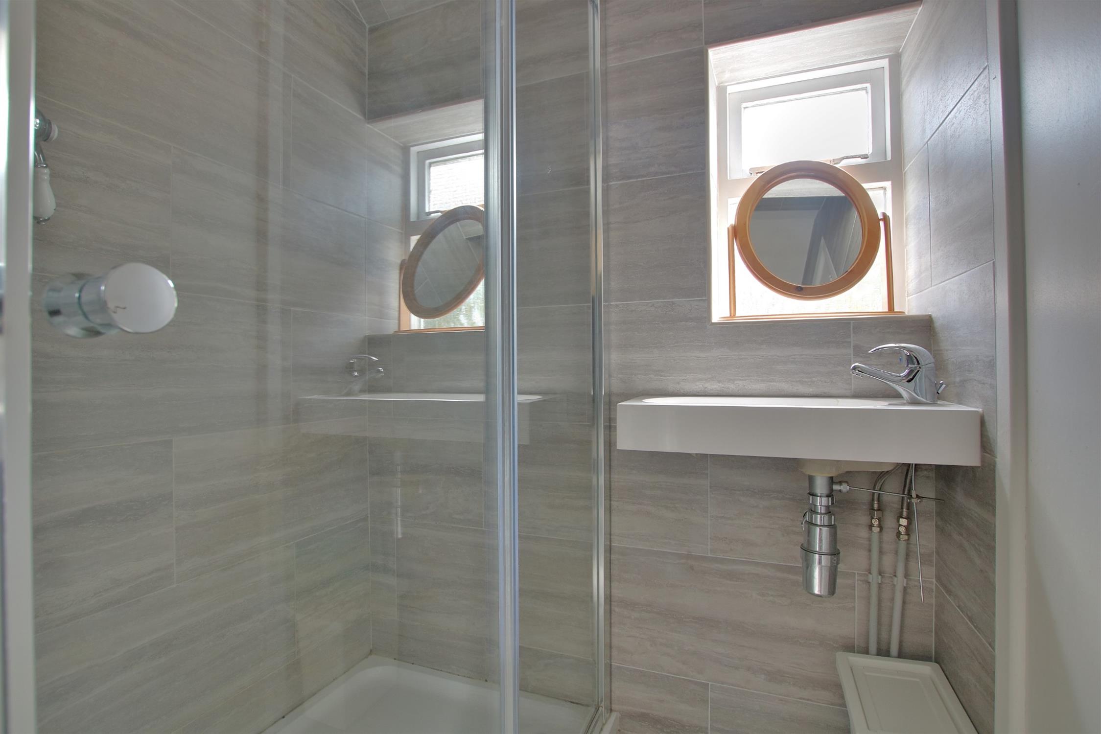 There is a dining room with French doors opening into the garden, a fitted kitchen, modern fitted shower room and separate WC which complete the downstairs accommodation. From the first floor landing there is access to a modern fitted bathroom and four bedrooms. There is a bay and forecourt to the front of the property with a pathway which leads to the front door. The rear garden is mostly laid to lawn with a patio area and enclosed on all sides.