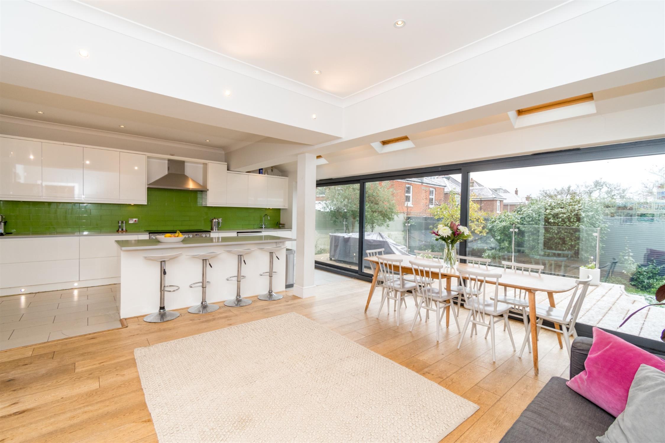 Situated in the much sought after Highfield district close to the Southampton University campus, this extended, detached family home offers spacious and adaptable accommodation over three floors. Immediately upon entering the property, you are welcomed by a generous reception hallway which boasts a period return staircase and access to all rooms. The exceptional kitchen/dining room has sliding glass doors that open onto the South facing rear garden. There is a separate sitting room as well as a well proportioned family room, ground floor cloakroom and utility room.