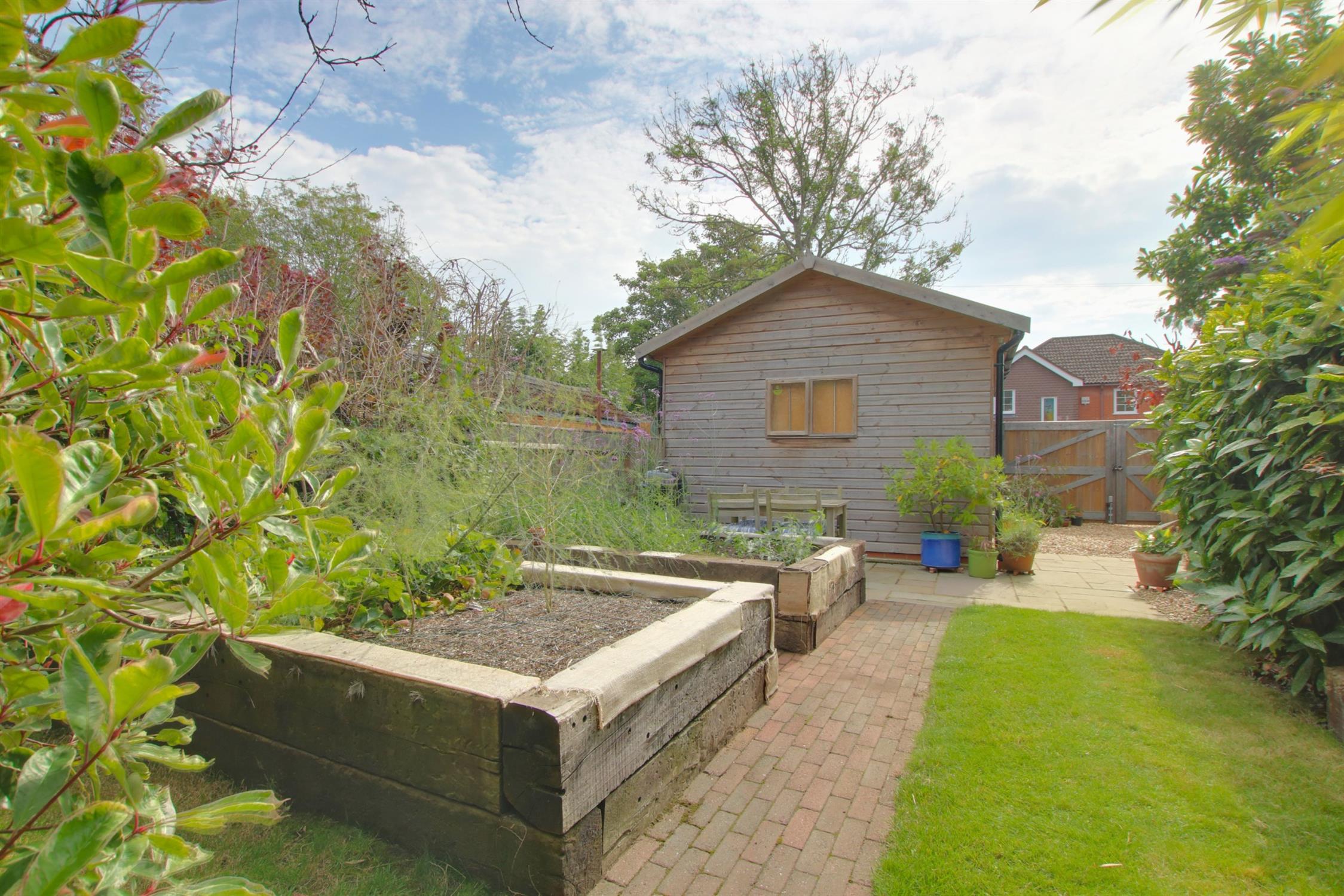 Landscaped rear garden with the benefit of a south easterly aspect. Indian sandstone patio seating area. Established flower and shrub borders populated with a variety of mature plants, shrubs and small trees. Three sleeper retained flower and vegetable beds. External power points as well as an outside. To the rear of the garden is a further Indian sandstone patio seating area. Outside tap. Double gates which give access onto the driveway which offers off road parking for two vehicles.