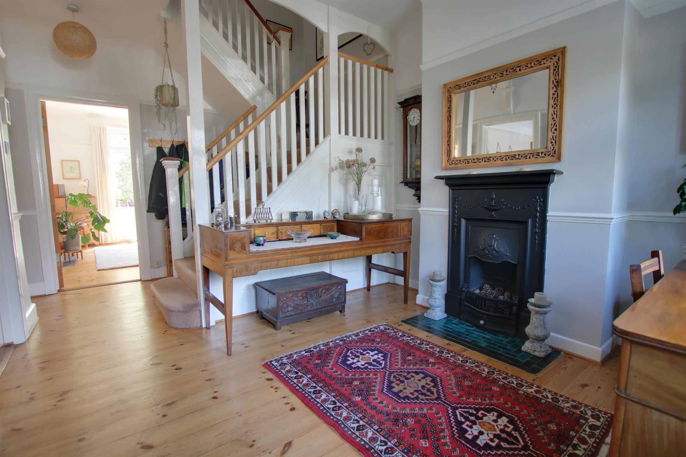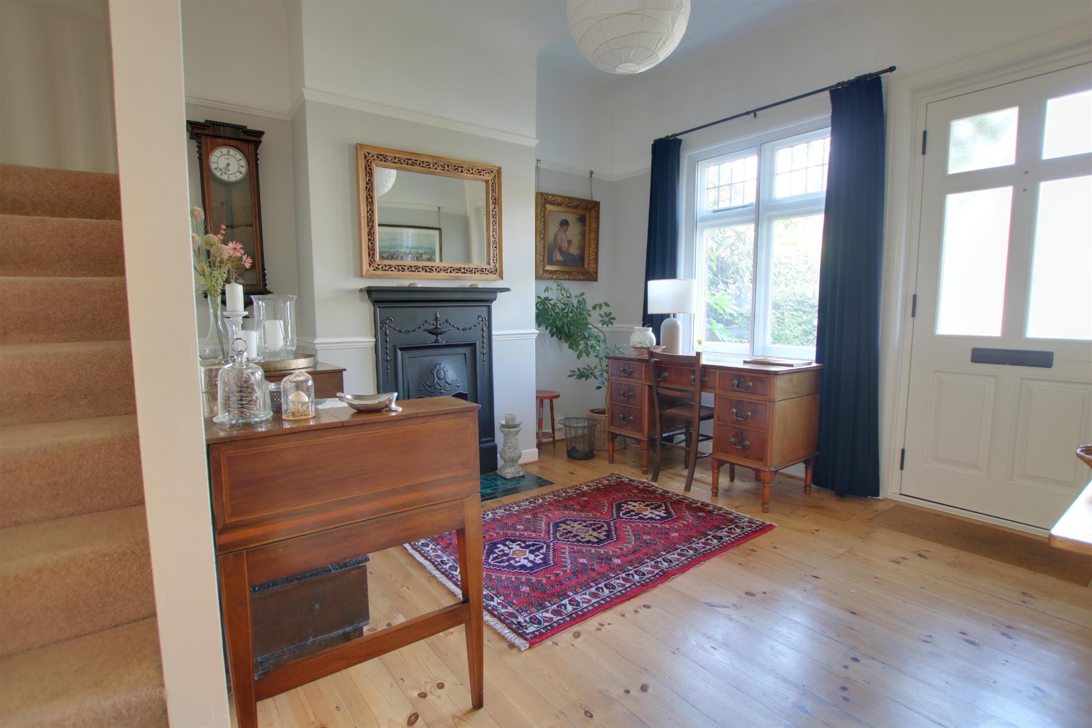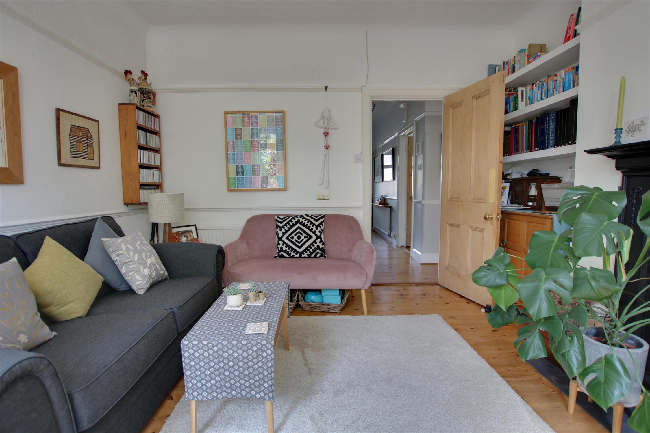 Secondary double glazing to front aspect. Smooth ceiling. Picture rail. Feature fireplace. Stripped wood flooring. Radiator. Stairs to first floor. Doors to all rooms.
