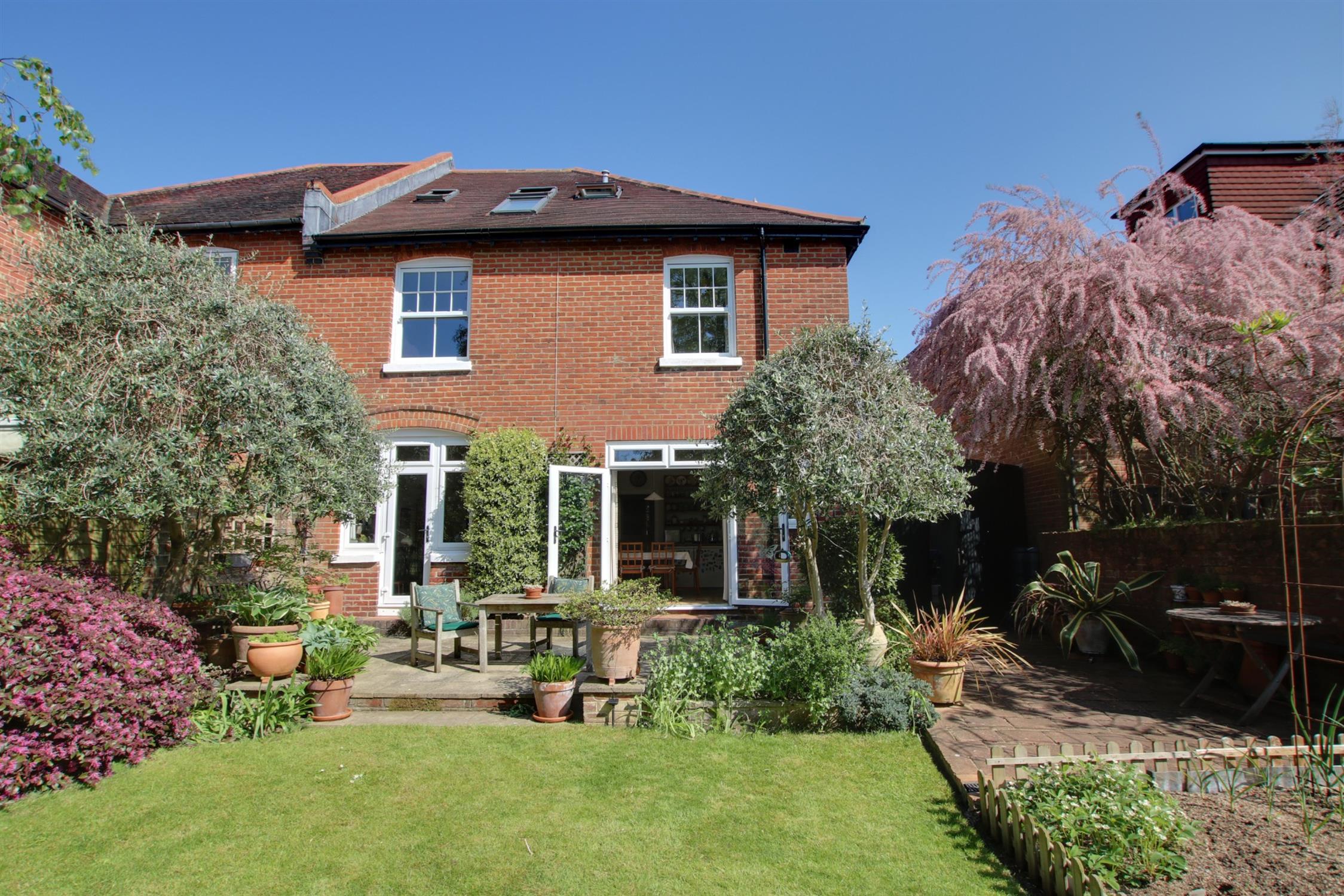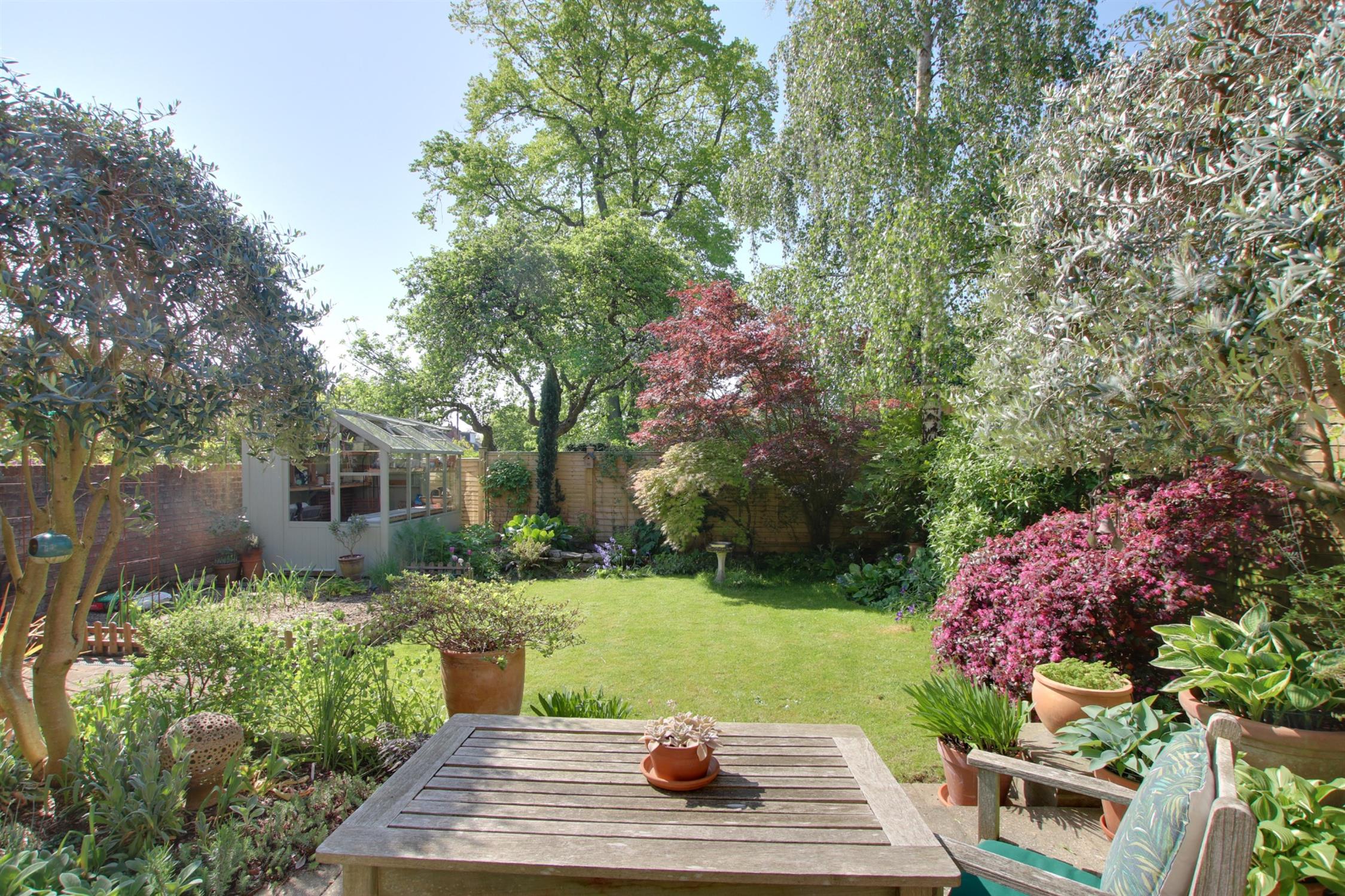 The rear garden is fully enclosed and has a southerly aspect with paved patio seating area, an area with terracotta paving, a vegetable plot and an area laid to lawn. The garden has a variety of mature plants, shrubs and small trees, including standard bay trees, olive trees and acers. Small pond. Outside tap.