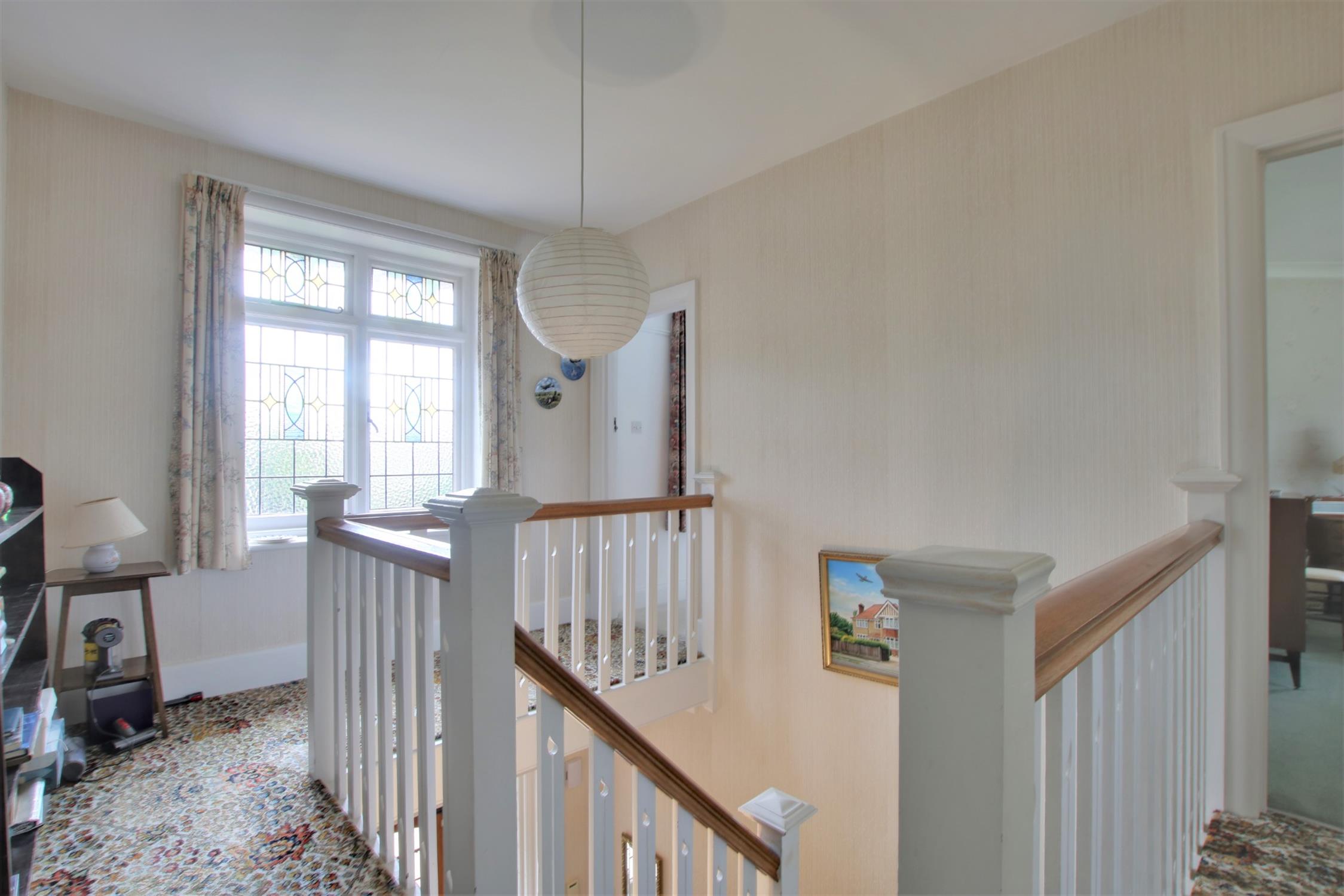 Superb galleried landing with spindle balustrade feature stained glass window to front elevation.