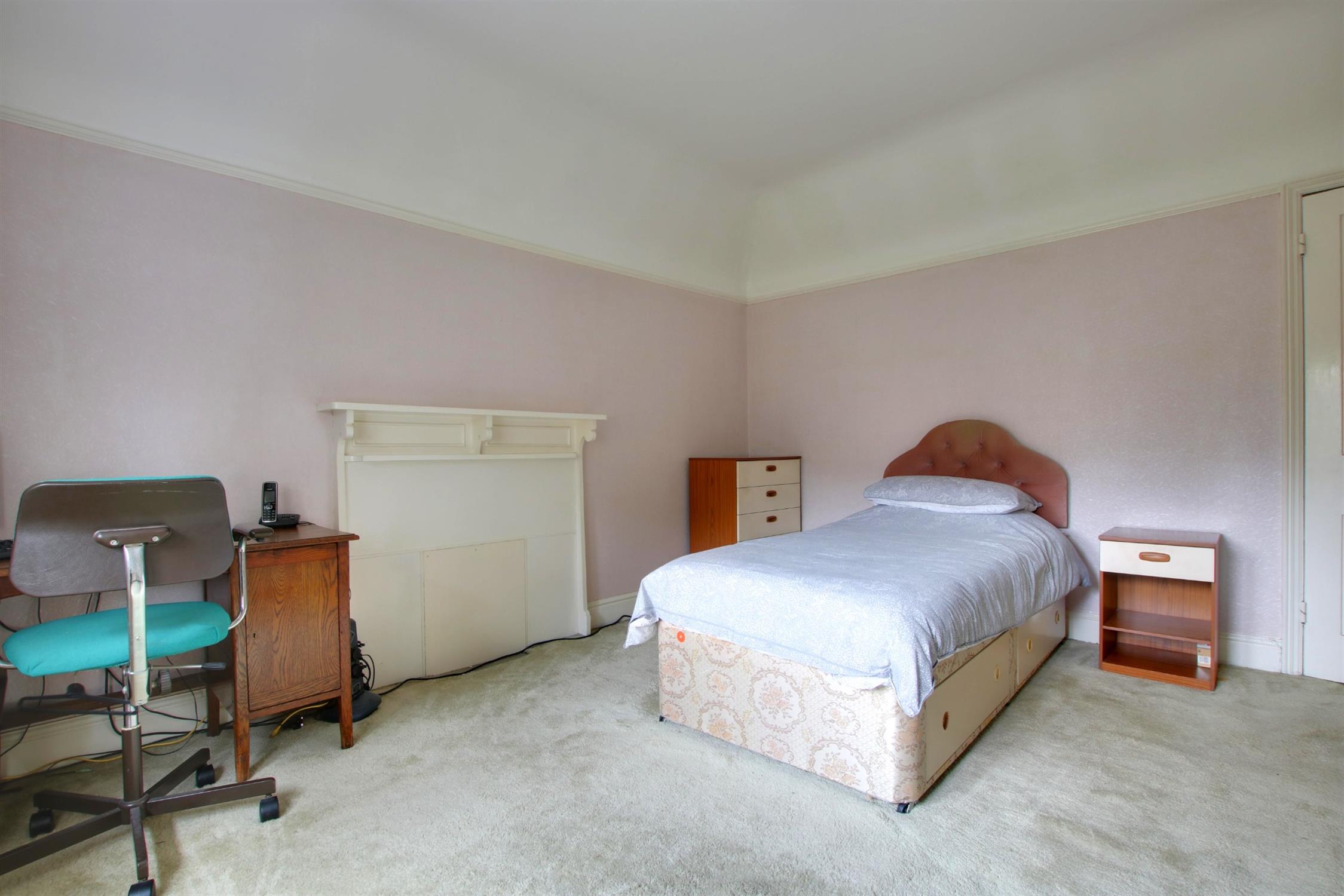 Double glazed bay window to front elevation. Smooth plastered ceiling. Picture railing. Radiator. Built-in storage cupboard.