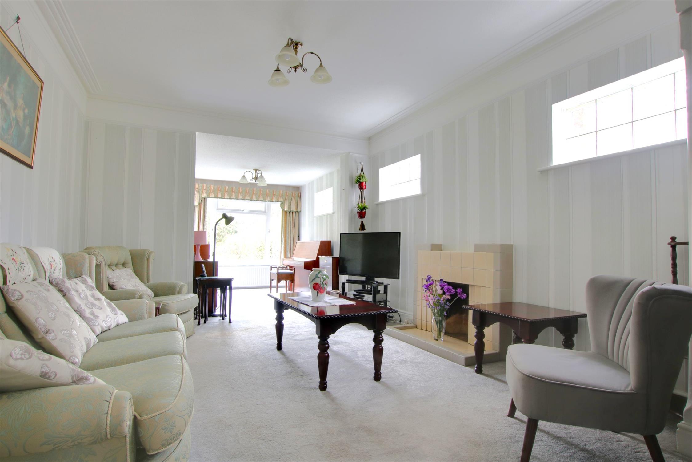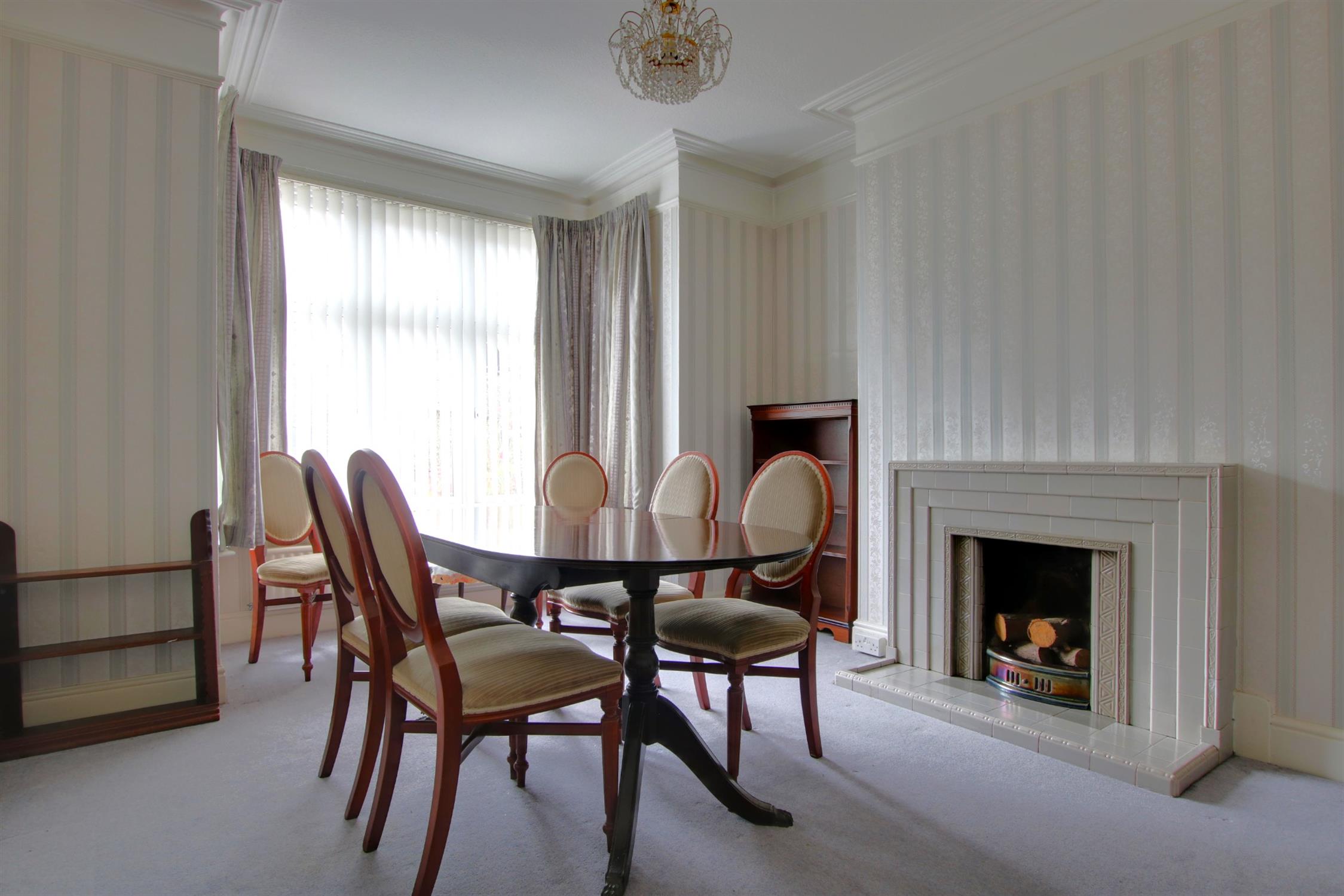 Substantial square formed double glazed bay window to front elevation. Two radiators. Feature fireplace. Coving. Picture railing.