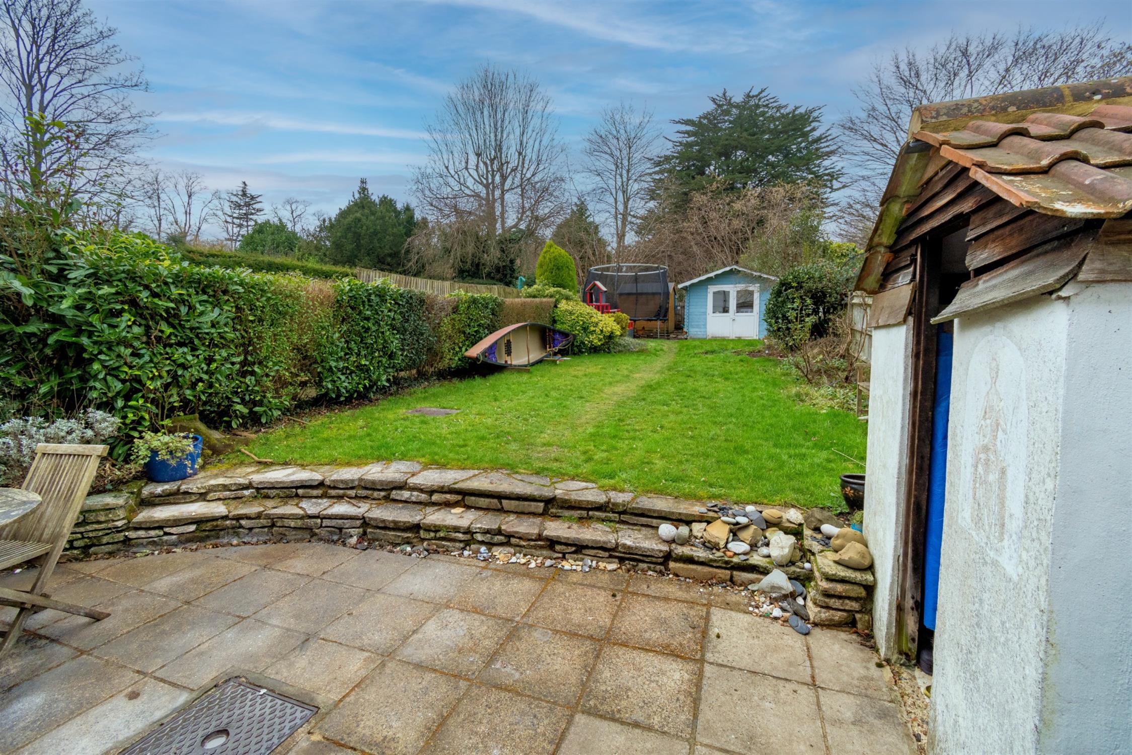 OUTSIDE:The front garden is laid to lawn with flower and shrub borders. Path of Purbeck Stone to main entrance door. Pedestrian access via an Oak gate and passageway to the rear of the property.