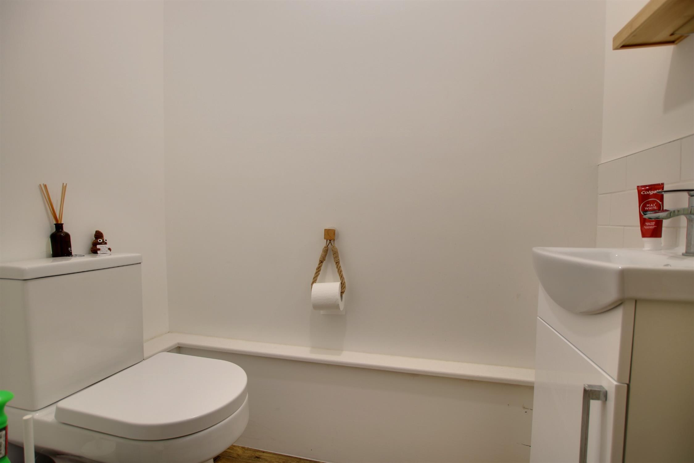 Low level W.C. vanity hand basin and extractor fan. Smooth plastered ceiling. Underfloor heating.